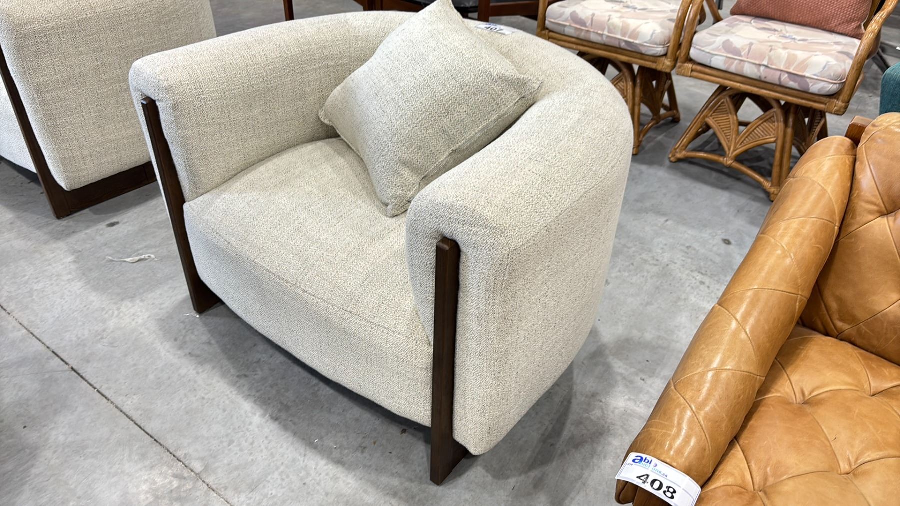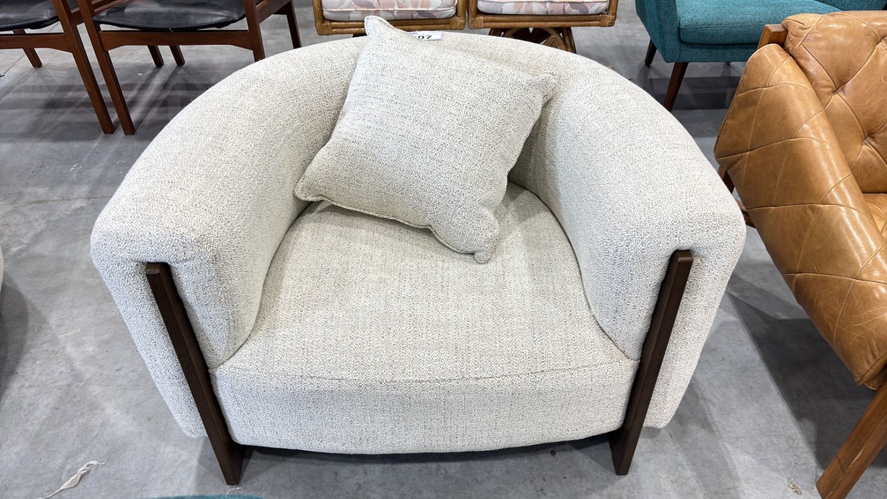 RETRO STYLE WHITE UPHOLSTERED LOUNGE CHAIR