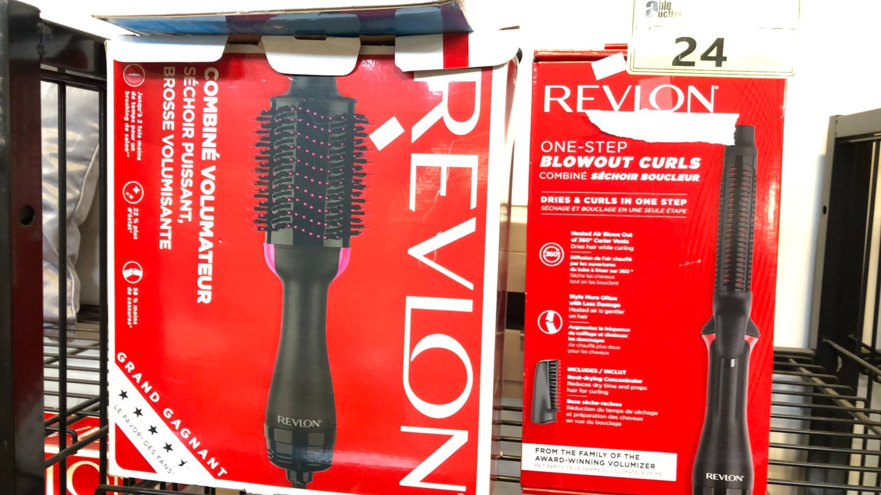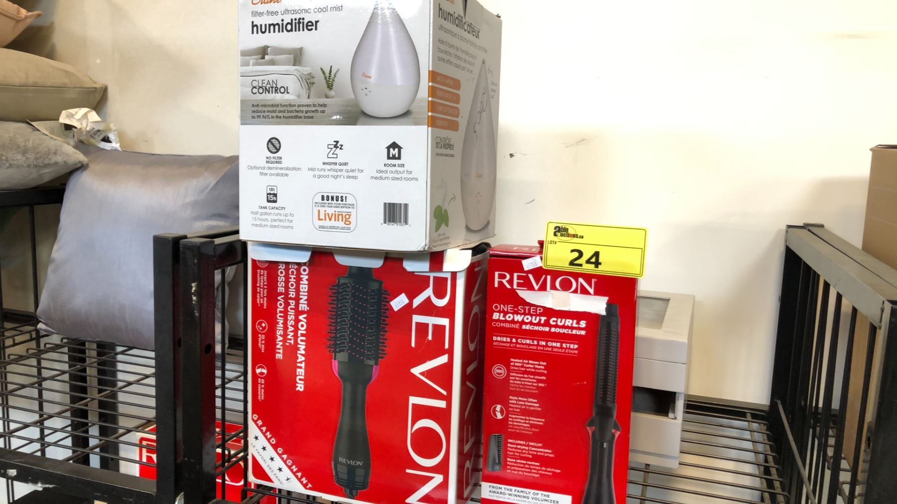 REVLON ONE-STEP VOLUMIZER AND BLOWOUT CURLS, CRANE COOL MIST HUMIDIFIER AND COMPARTMENT BOX WITH MISSING DRAWER