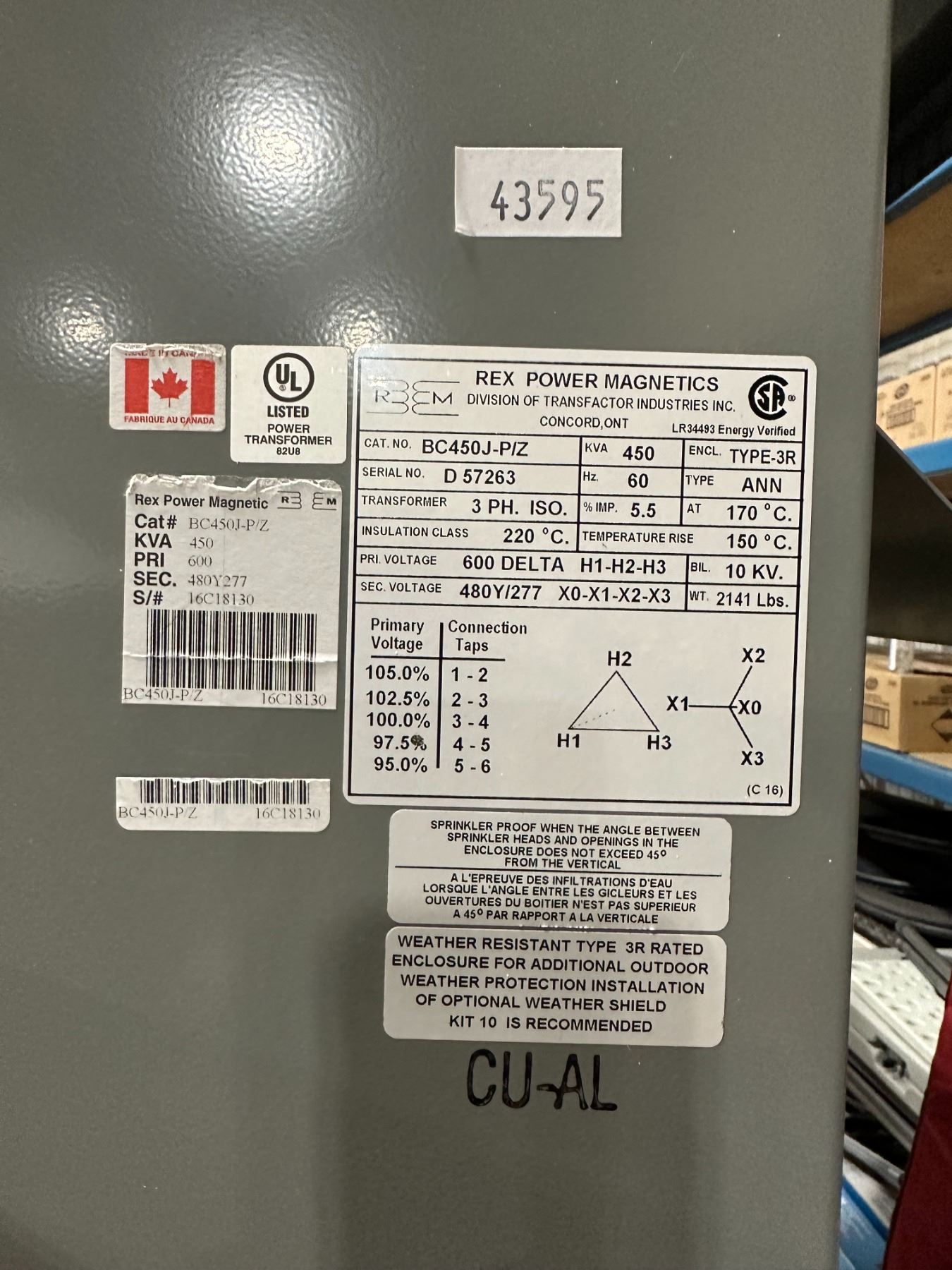 REX POWER MAGNETIC BC450J-P/Z INDUSTRIAL 3 PZ ISO. 600 DELTA TYPE-3R POWER TRANSFORMER SIZE 46"W X 50"D X 64"H