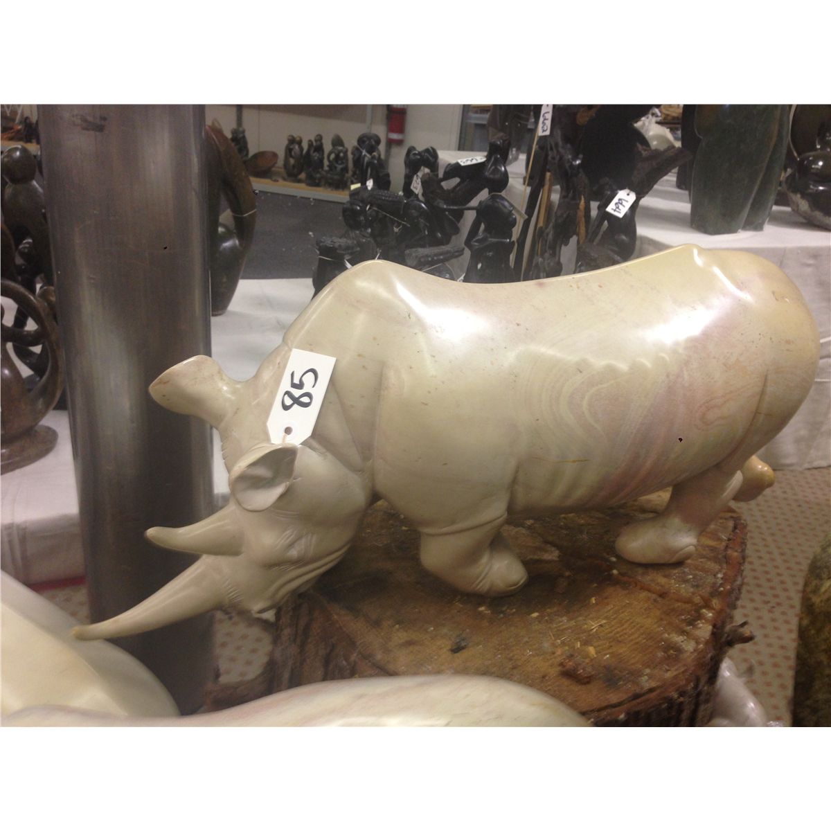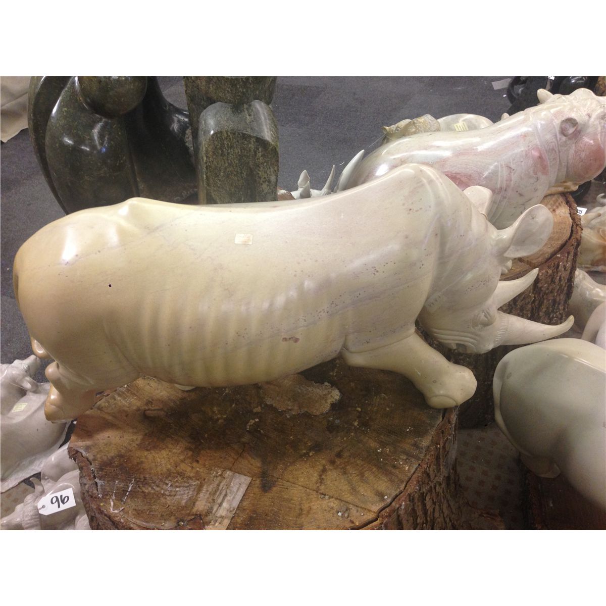 RHINO, HAND CARVED FROM KENYAN SOFT STONE. 28" LONG, 12" TALL GALLERY PRICE $3500