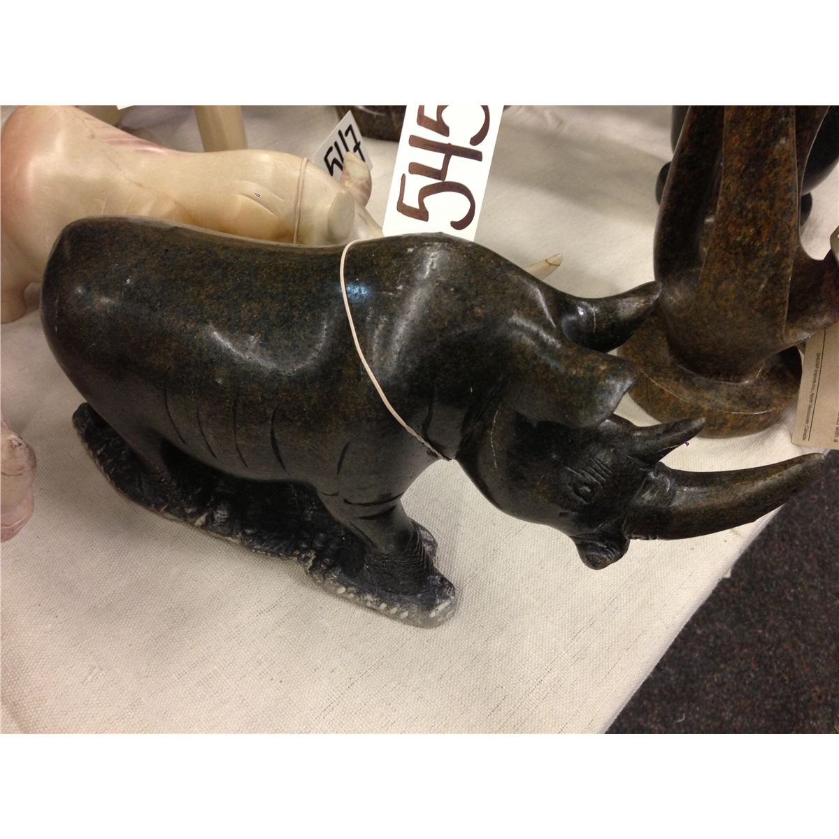 RHINO, HAND CARVED FROM SPRING STONE 12" LONG 5" TALL