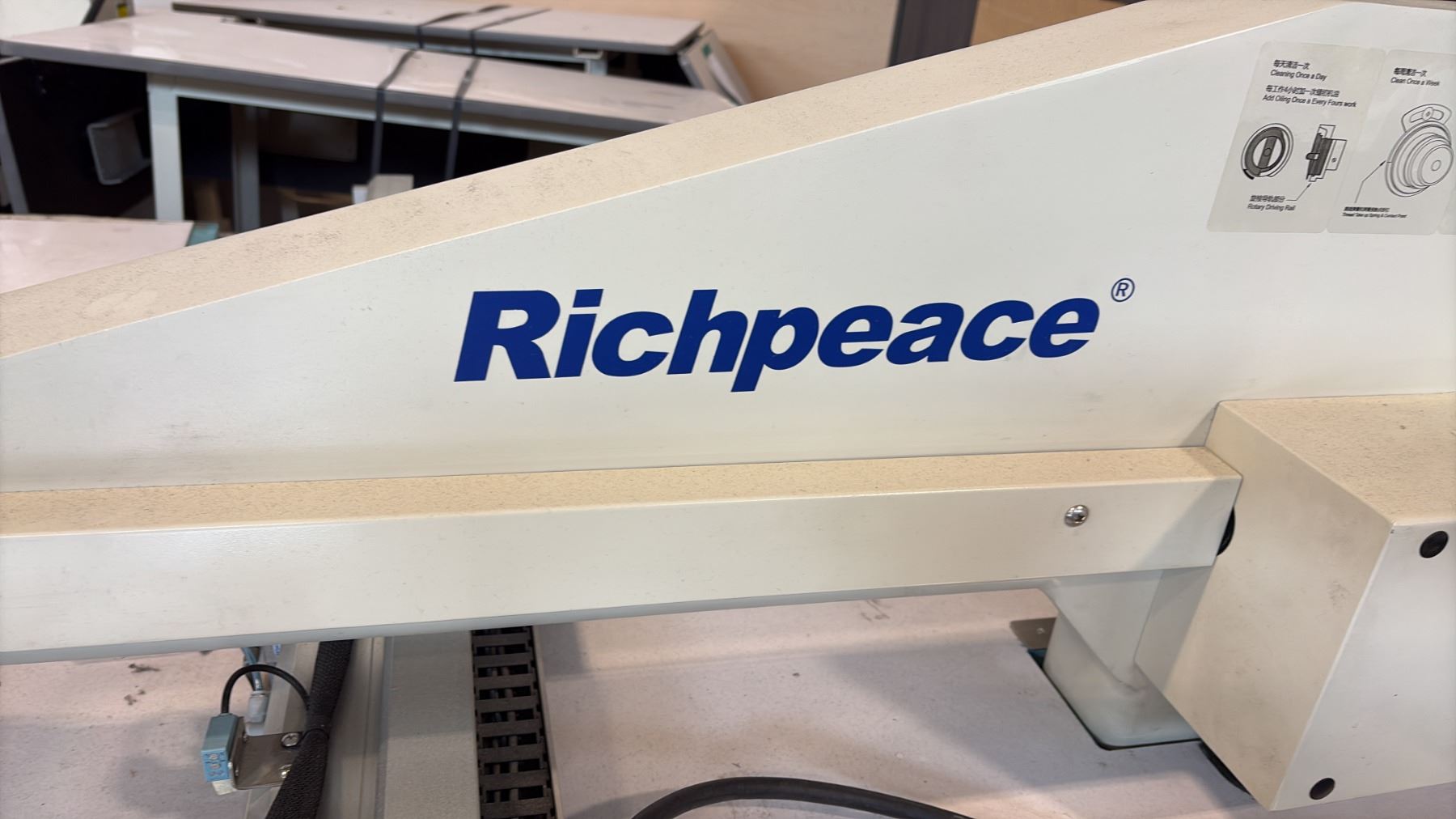 RICHPEACE RPAS-LM-C1-1200X800-A-IS1-VR1=LH50, UTC, A0-1P110 AUTOMATIC COMPUTER-CONTROLLED SINGLE-HEAD ARM-TYPE SEWING STATION