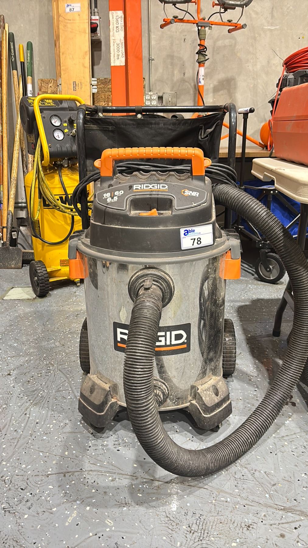 RIDGID 16 GALLON 6.5 HP MOBILE SHOP VACUUM WITH HOSE & ATTACHMENTS
