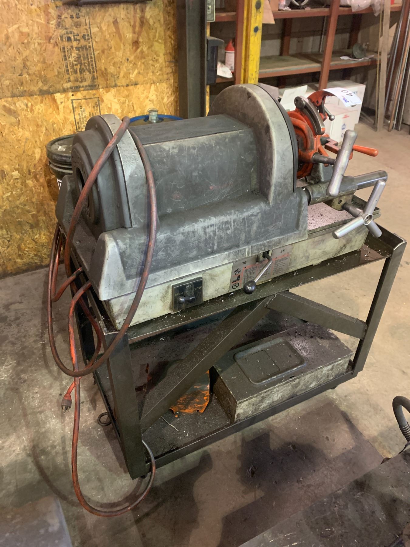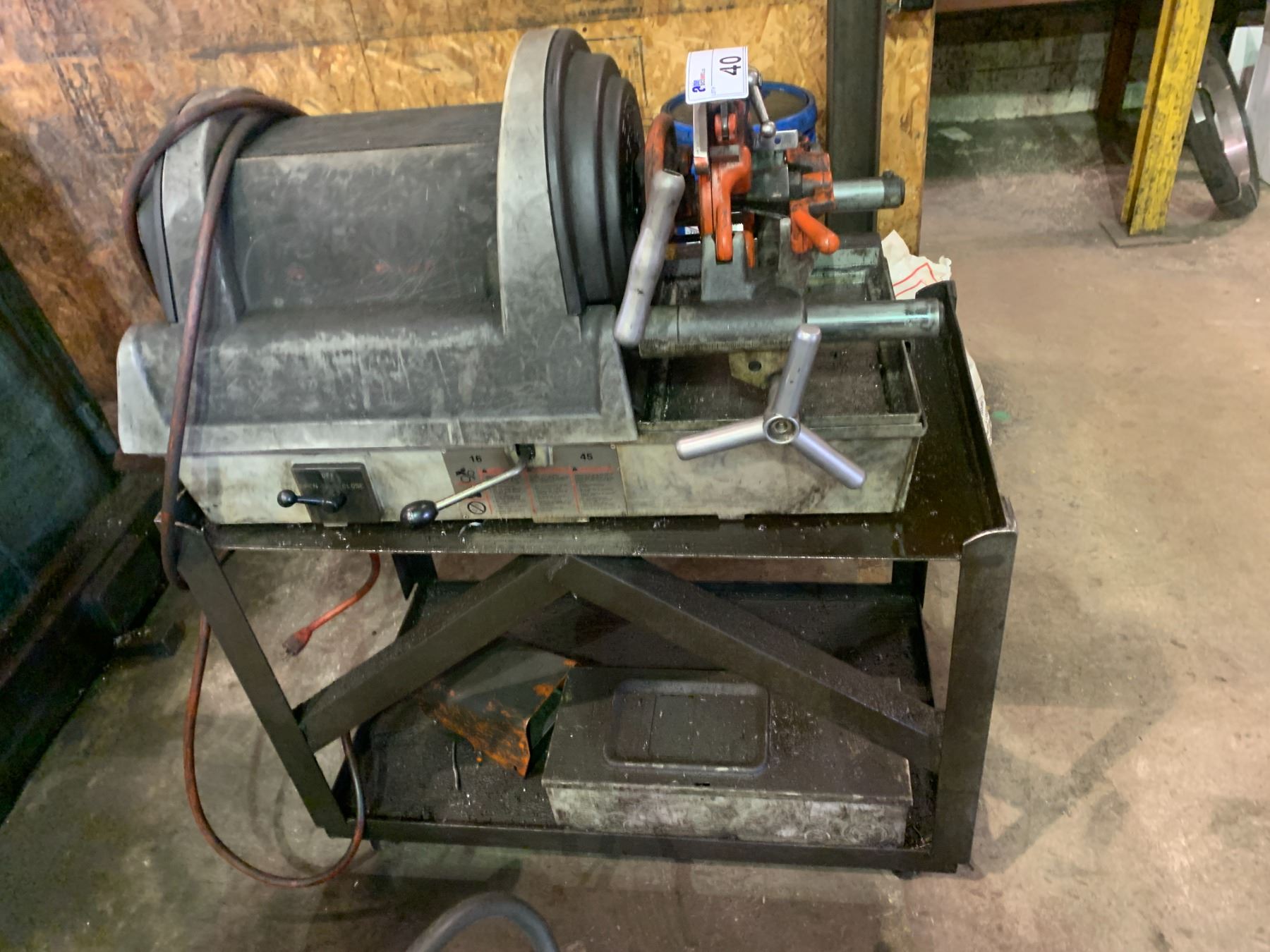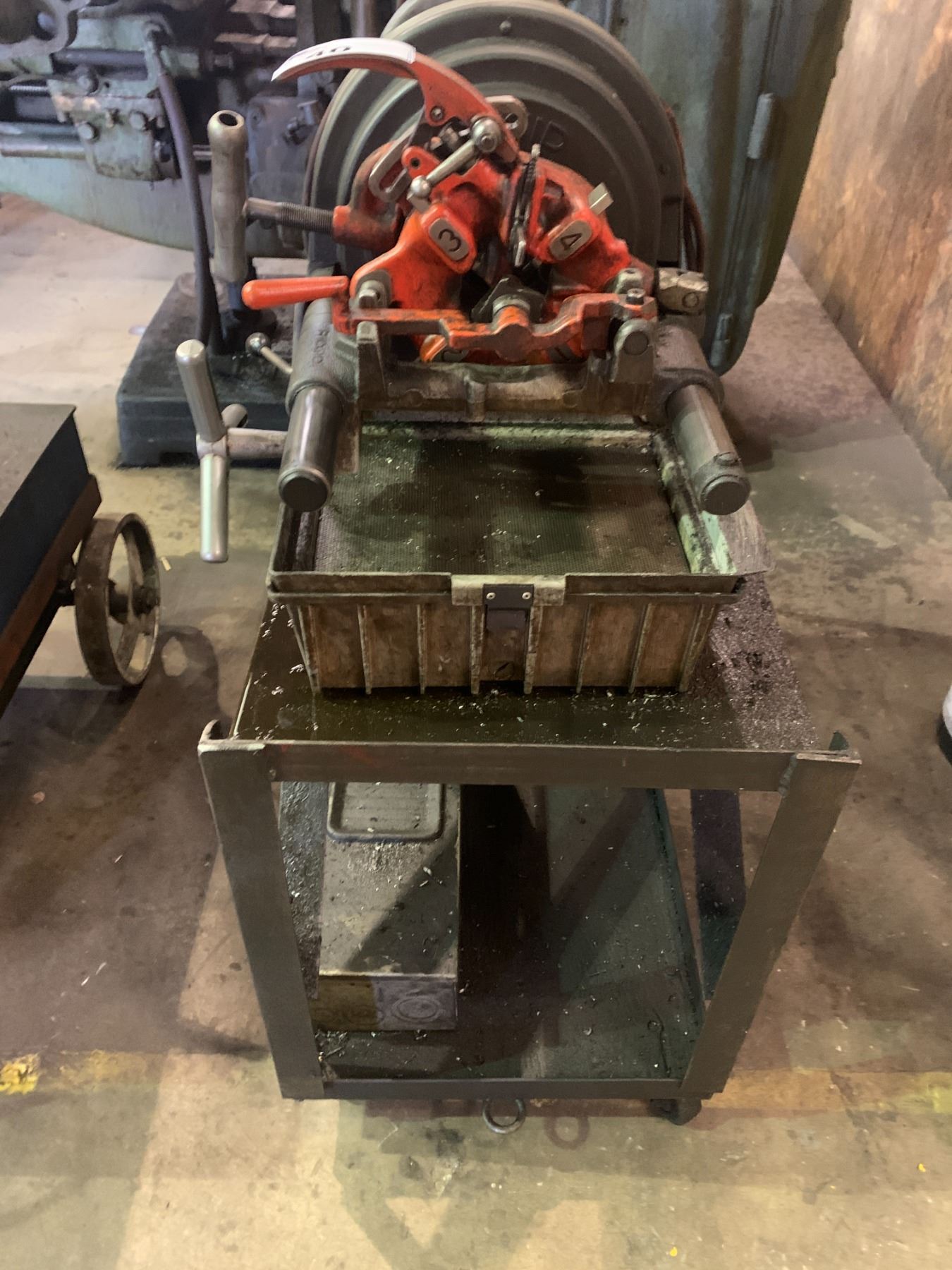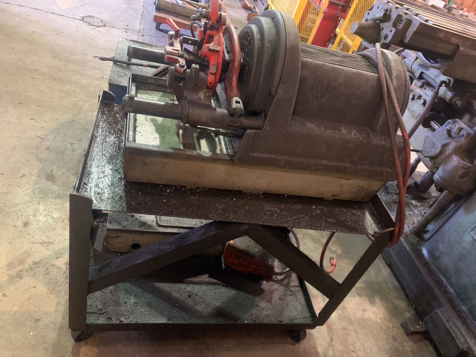 RIDGID 1822-IC ELECTRIC INDUSTRIAL PIPE THREADER WITH CUTTER & THREADING TOOL ON METAL MOBILE CART