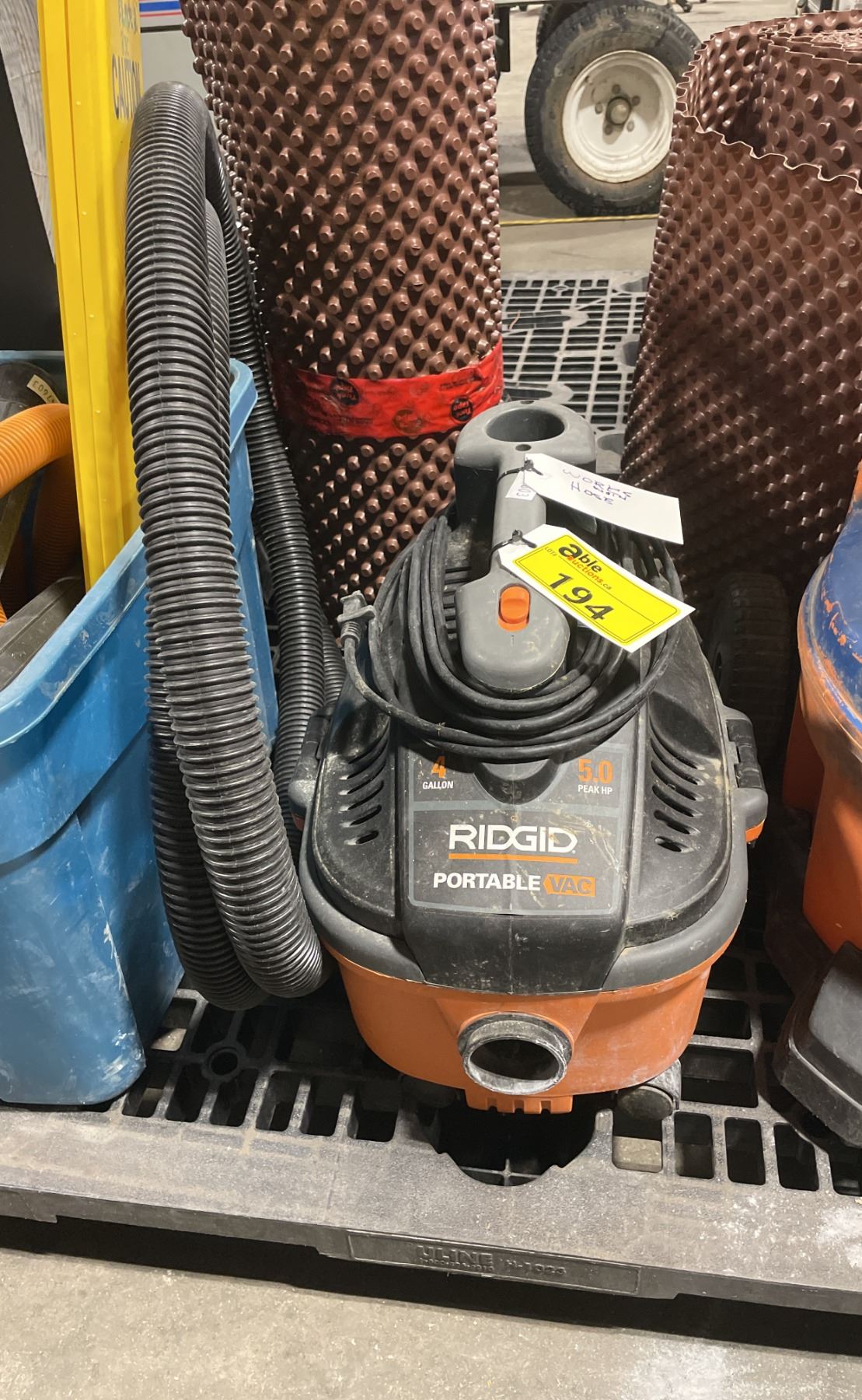 RIDGID 4 GAL INDUSTRIAL ELECTRIC PORTABLE SHOP VACUUM WITH HOSE