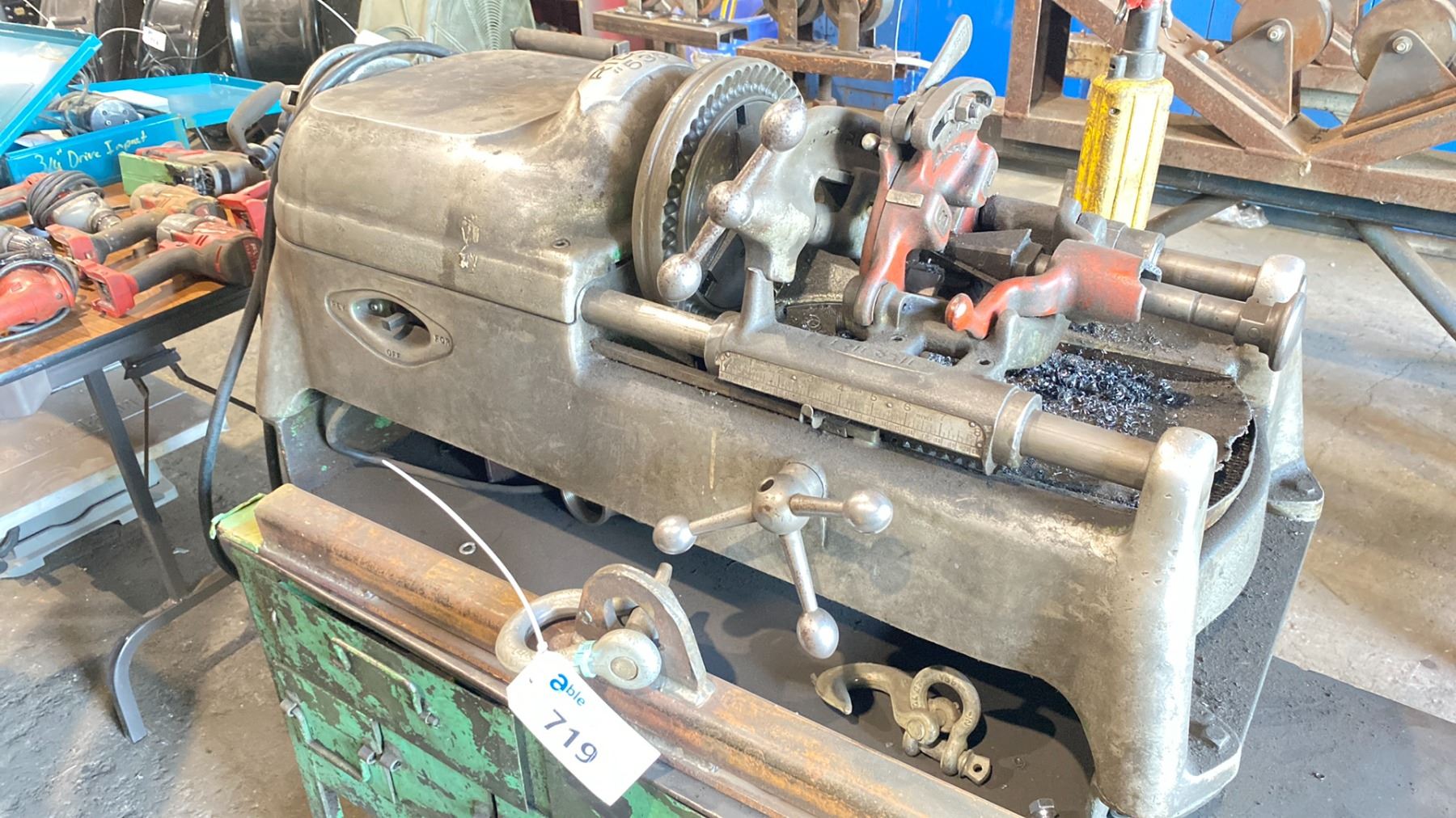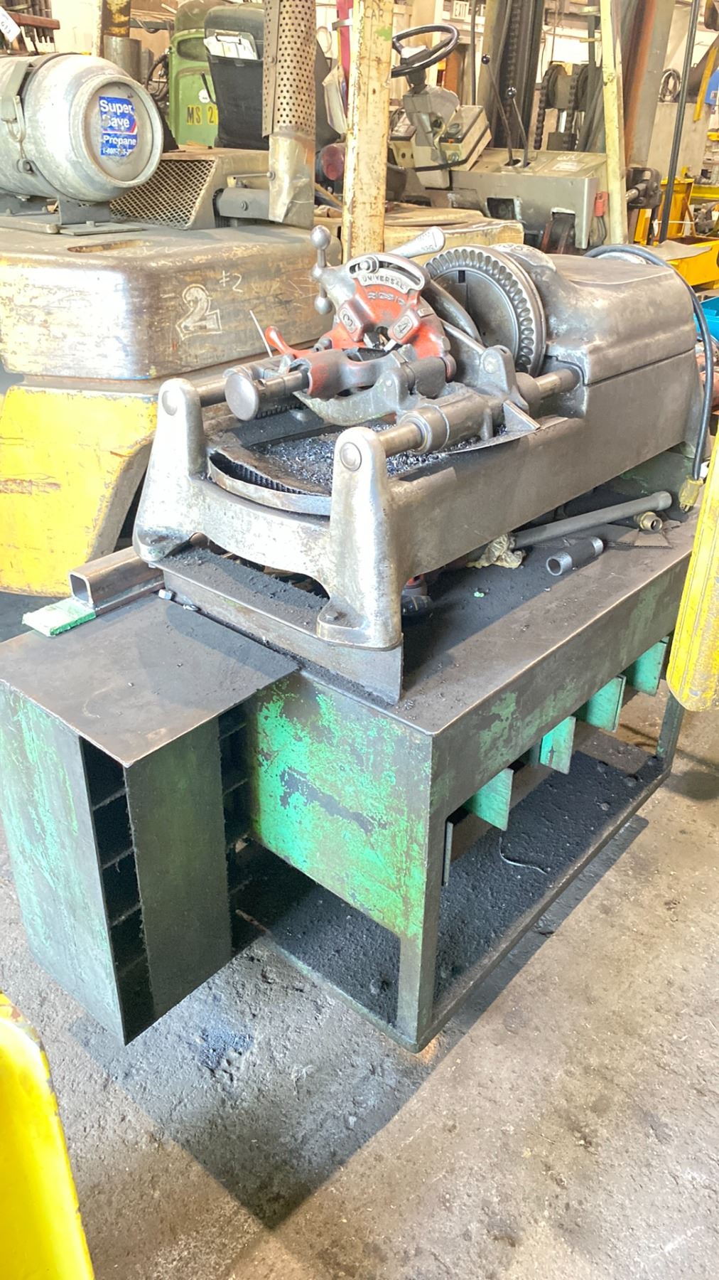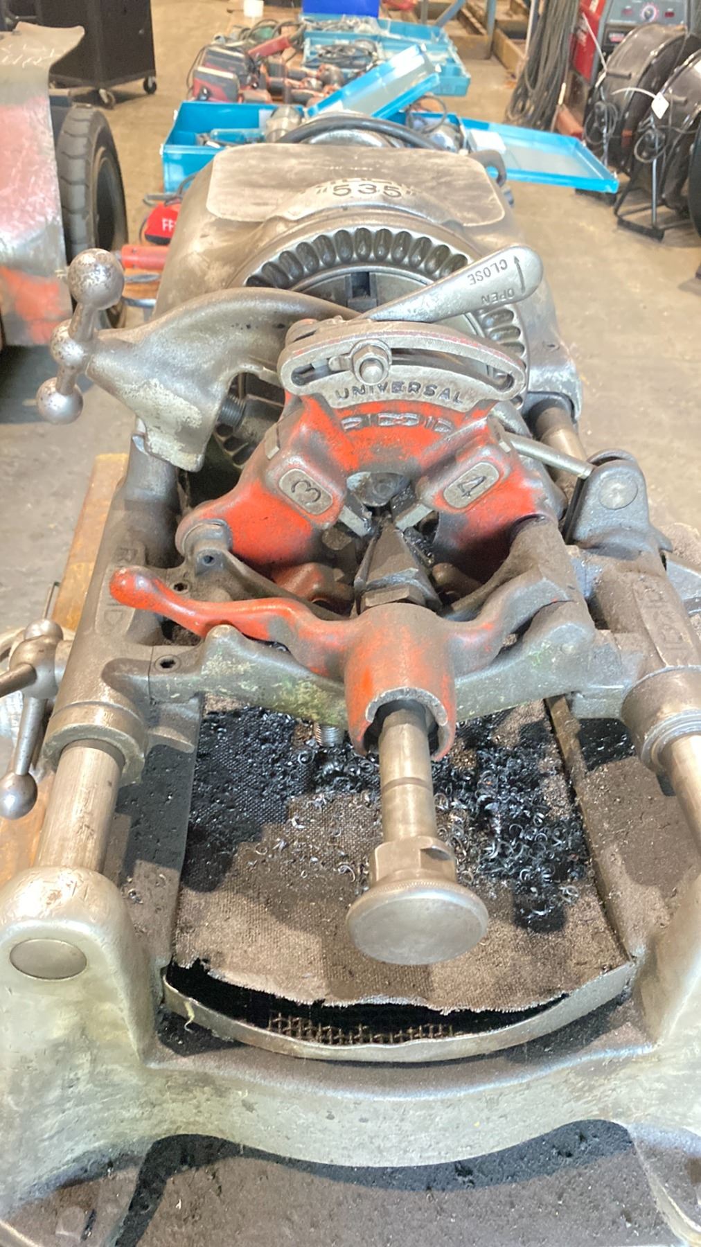 RIDGID 535 THREADING MACHINE ON STEEL MOBILE WORK CART