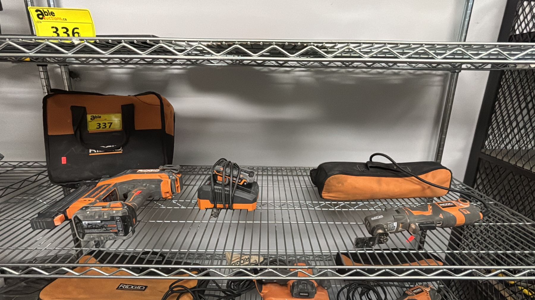 RIDGID BRAD NAILER WITH BATTERY, RIDGID ELECTRIC MULTI TOOL, RIDGID BATTERY WITH CHARGER & A RIDGID