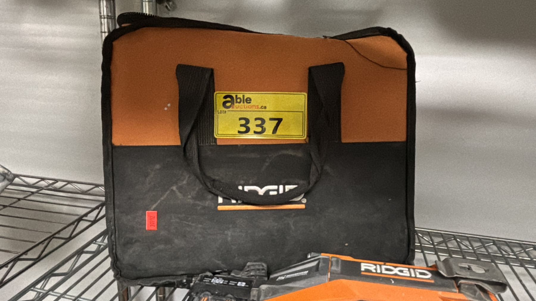 RIDGID BRAD NAILER WITH BATTERY, RIDGID ELECTRIC MULTI TOOL, RIDGID BATTERY WITH CHARGER & A RIDGID TOOL BAG