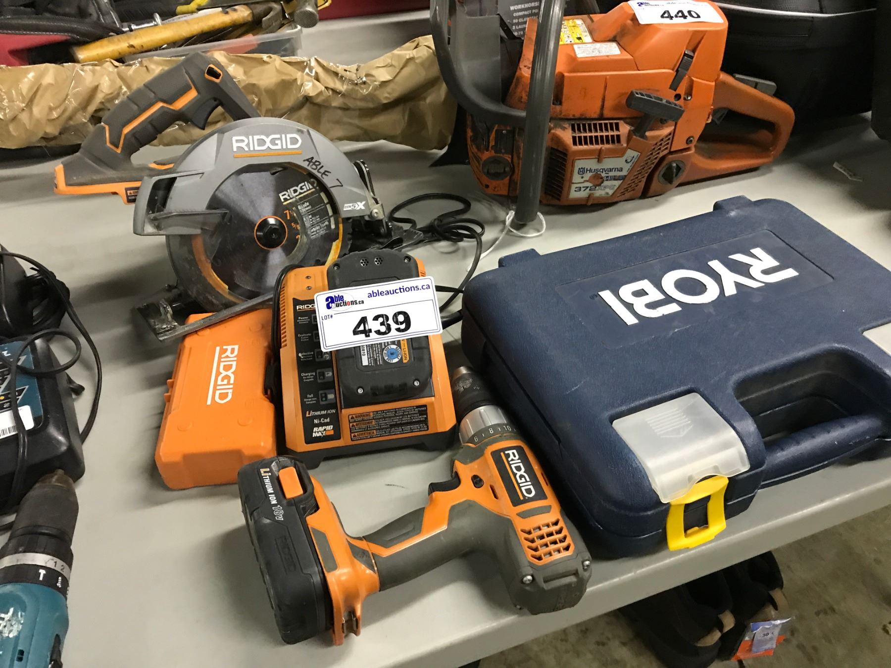 RIDGID CIRCULAR SAW, CORDLESS DRILL AND A RYOBI BIT SET