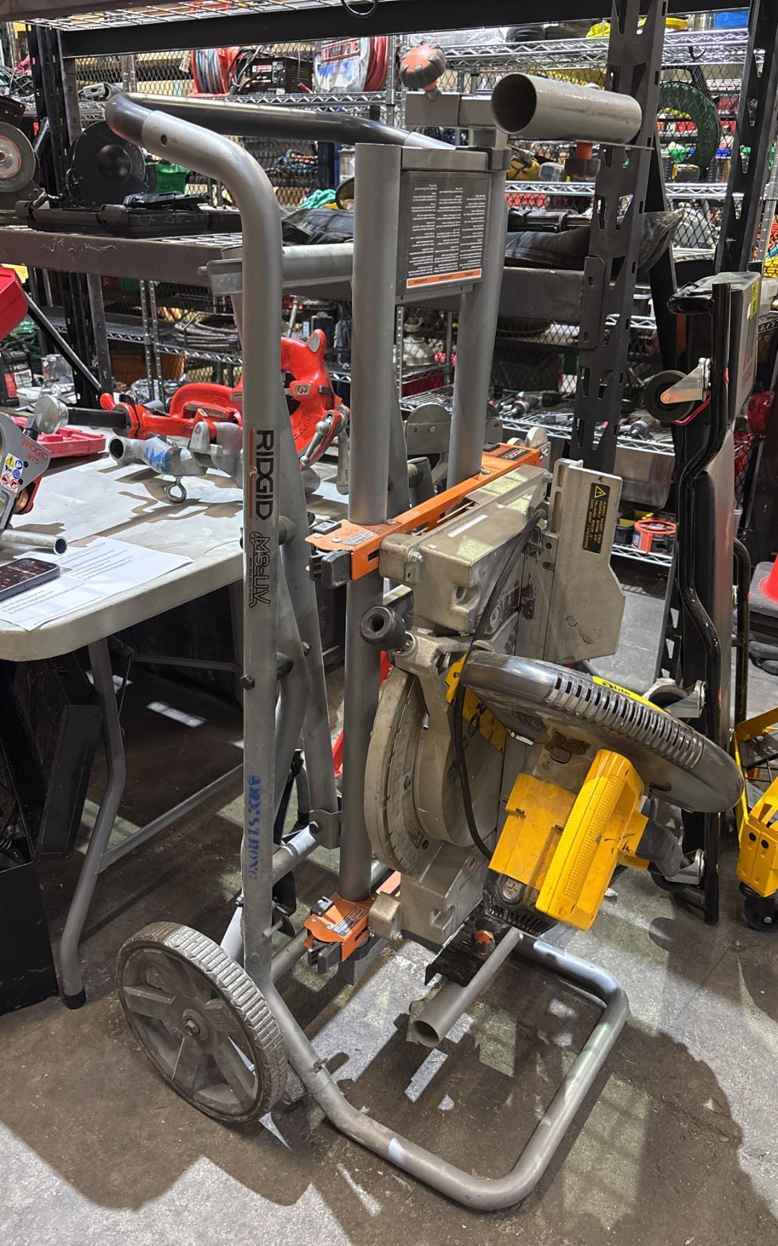 RIDGID MITER SAW ON A MOBILE STAND