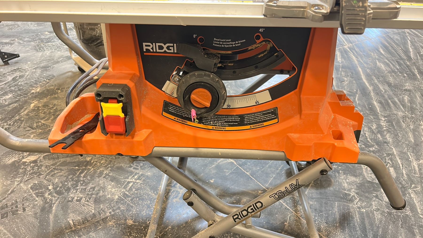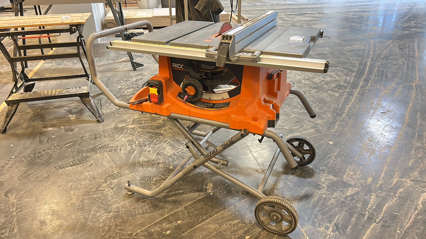 RIDGID PORTABLE TABLE SAW. MODEL: TS-UV. MISSING GUIDE, BLADE HEIGHT ADJUSTABLE KNOB IS BROKEN. BRETT CAN TELL YOU HOW TO FIX IT BECAUSE HIS BROKE TOO.