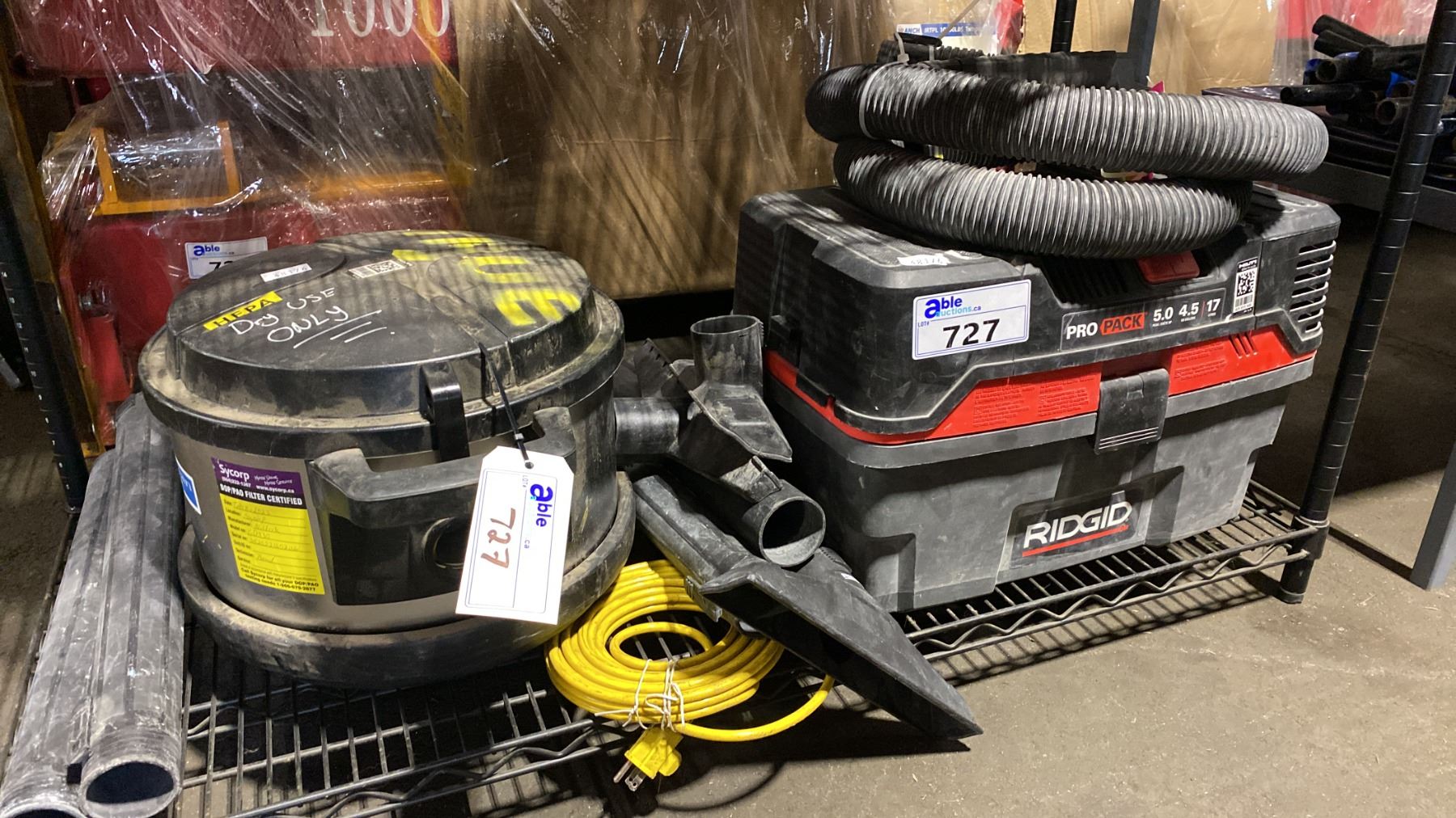 RIDGID PRO PACK SHOP VAC, EUROCLEAN SHOP VAC, ATTACHMENTS & EXTENSION CORD
