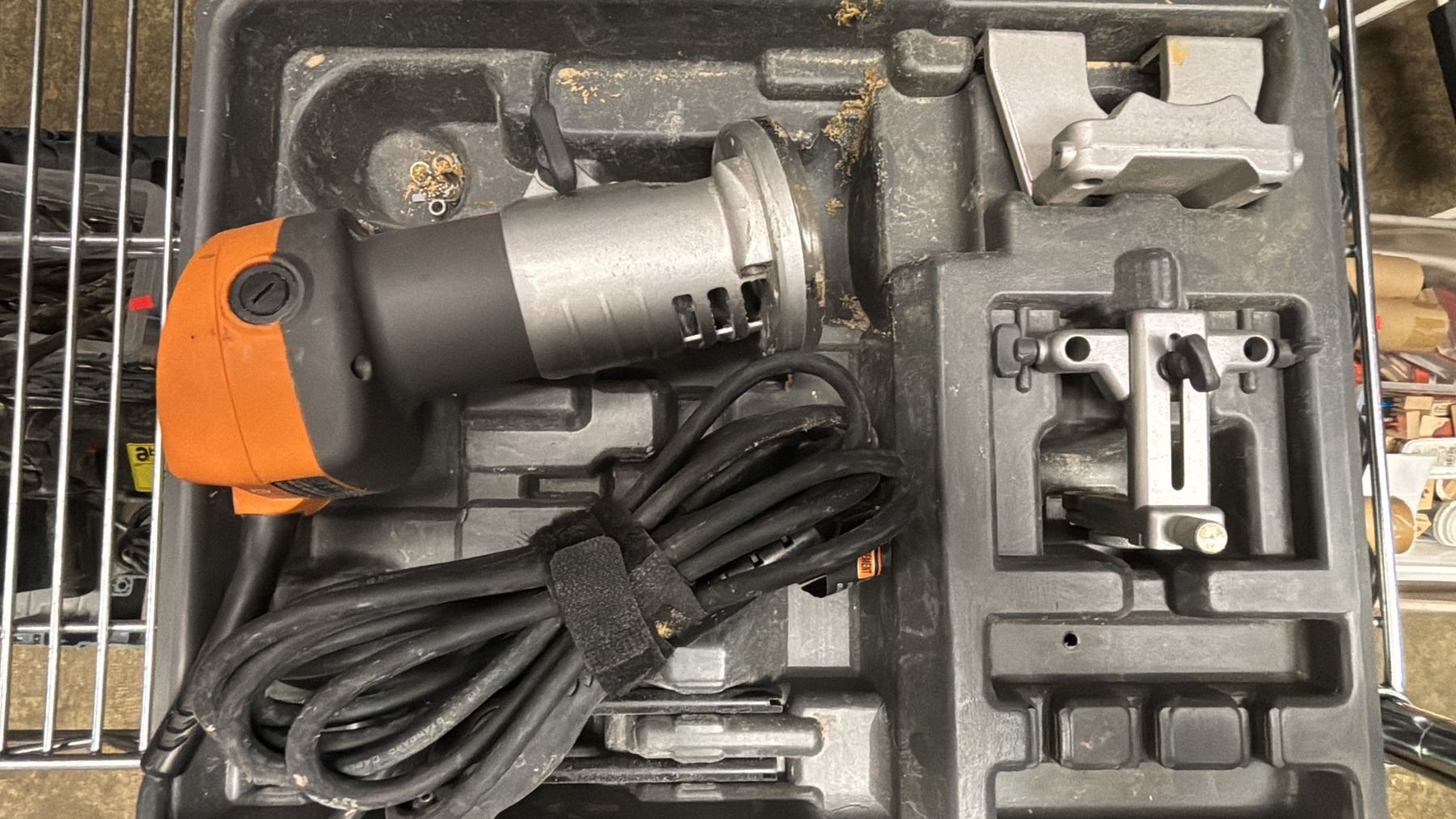 RIDGID R2400 ELECTRIC LAMINATE TRIMMER IN A HARD TRANSPORT CASE