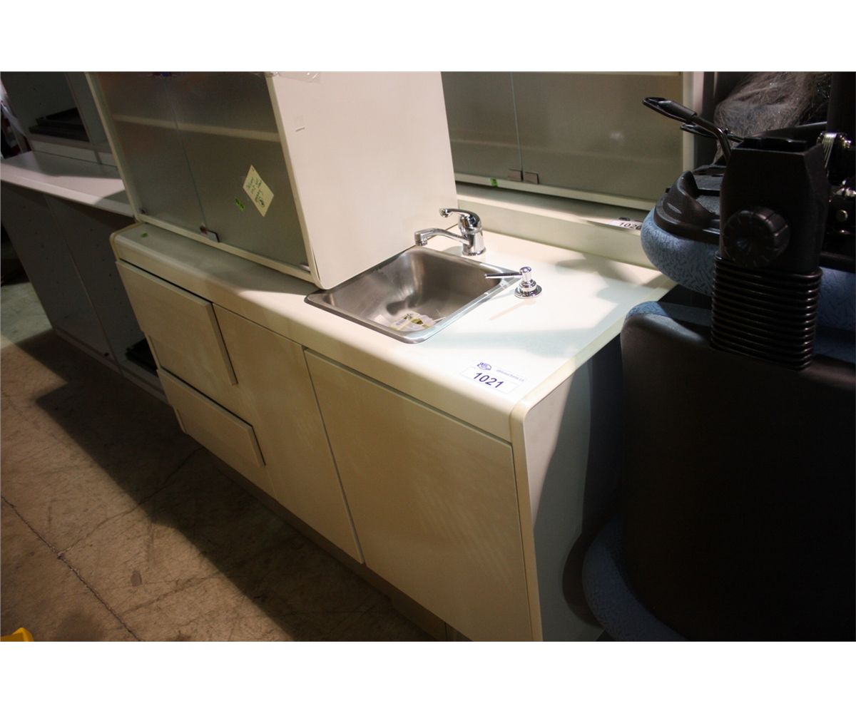 RIGHT HAND SINK DENTAL STATION WITH OVERHEAD WALL CABINET