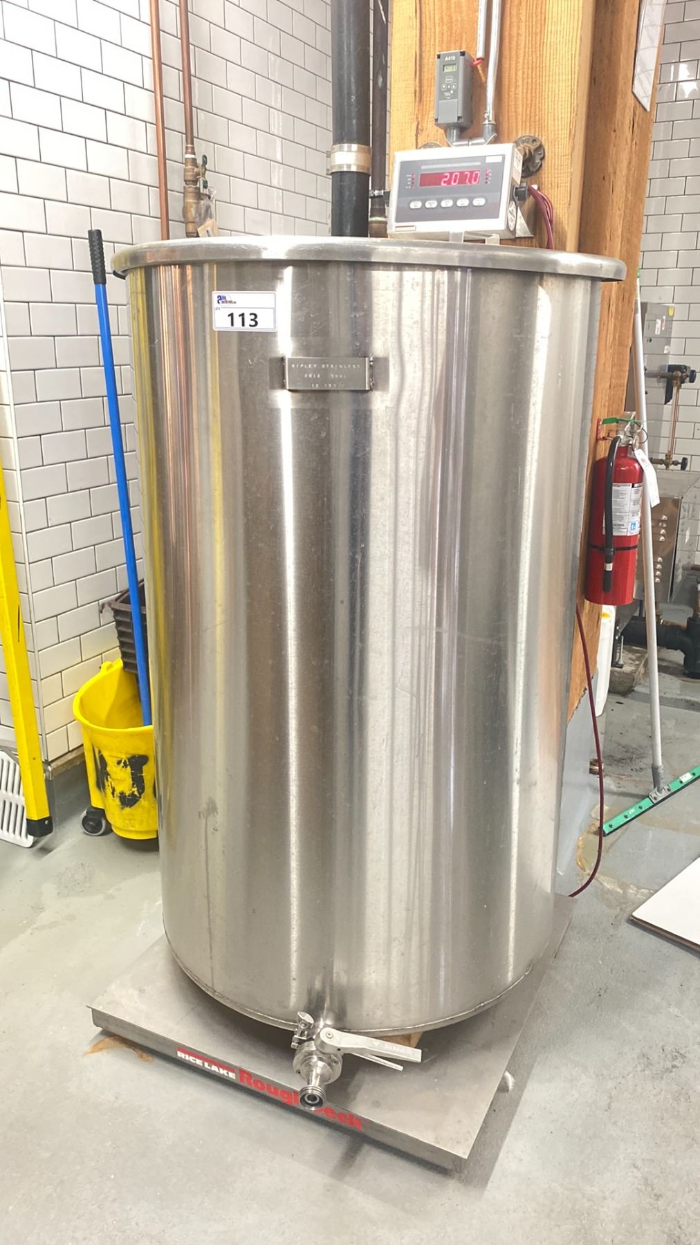 RIPLEY 2012 STAINLESS STEEL 500L COMMERCIAL MASH TANK WITH RICELAKE STAINLESS STEEL DIGITAL TANK WEIGHING SYSTEM