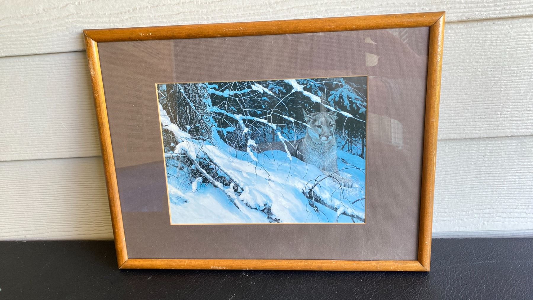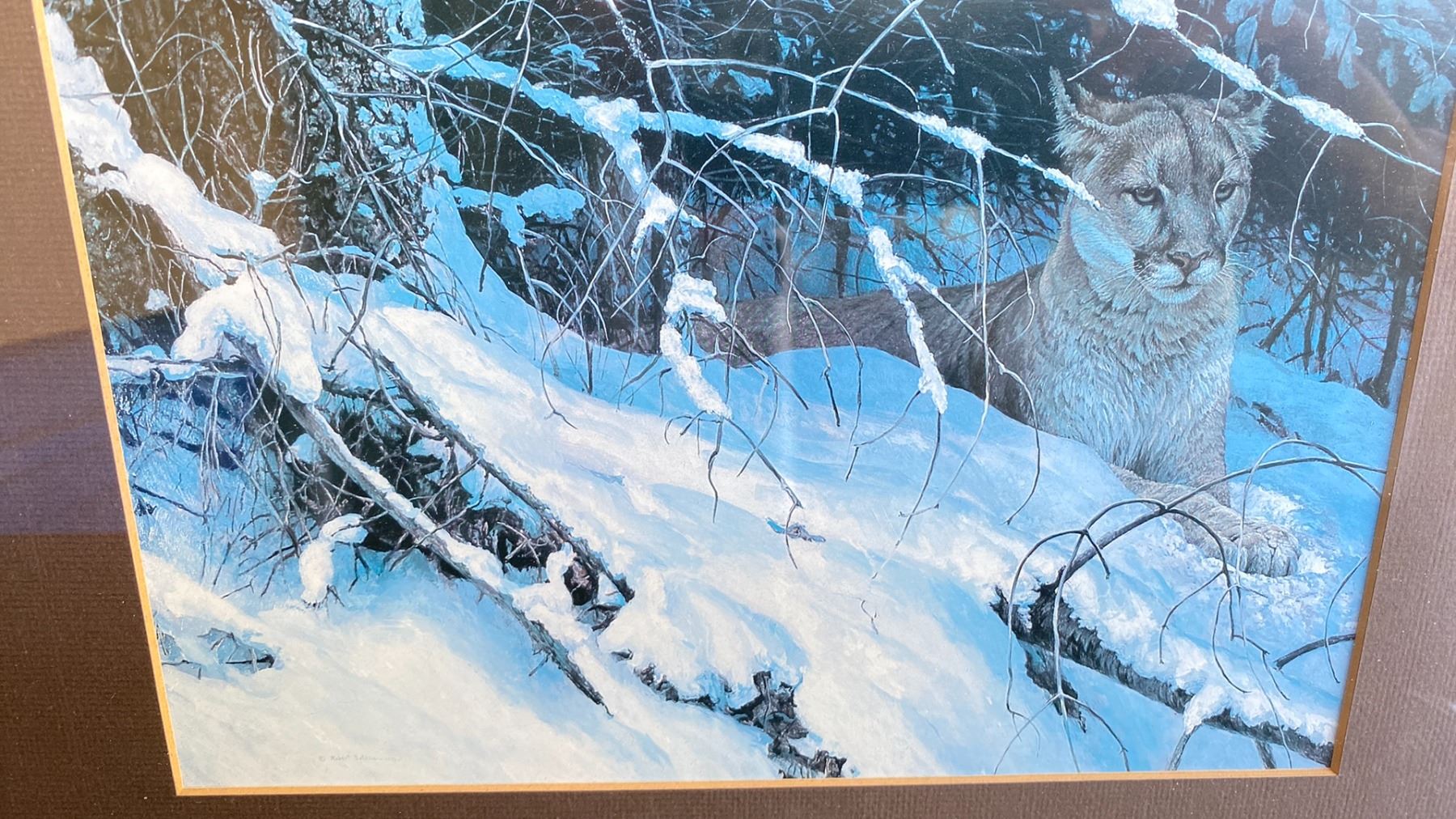 ROBERT BATEMAN "COUGAR IN THE SNOW" FRAMED PRINT (17" X 13" FRAMED)