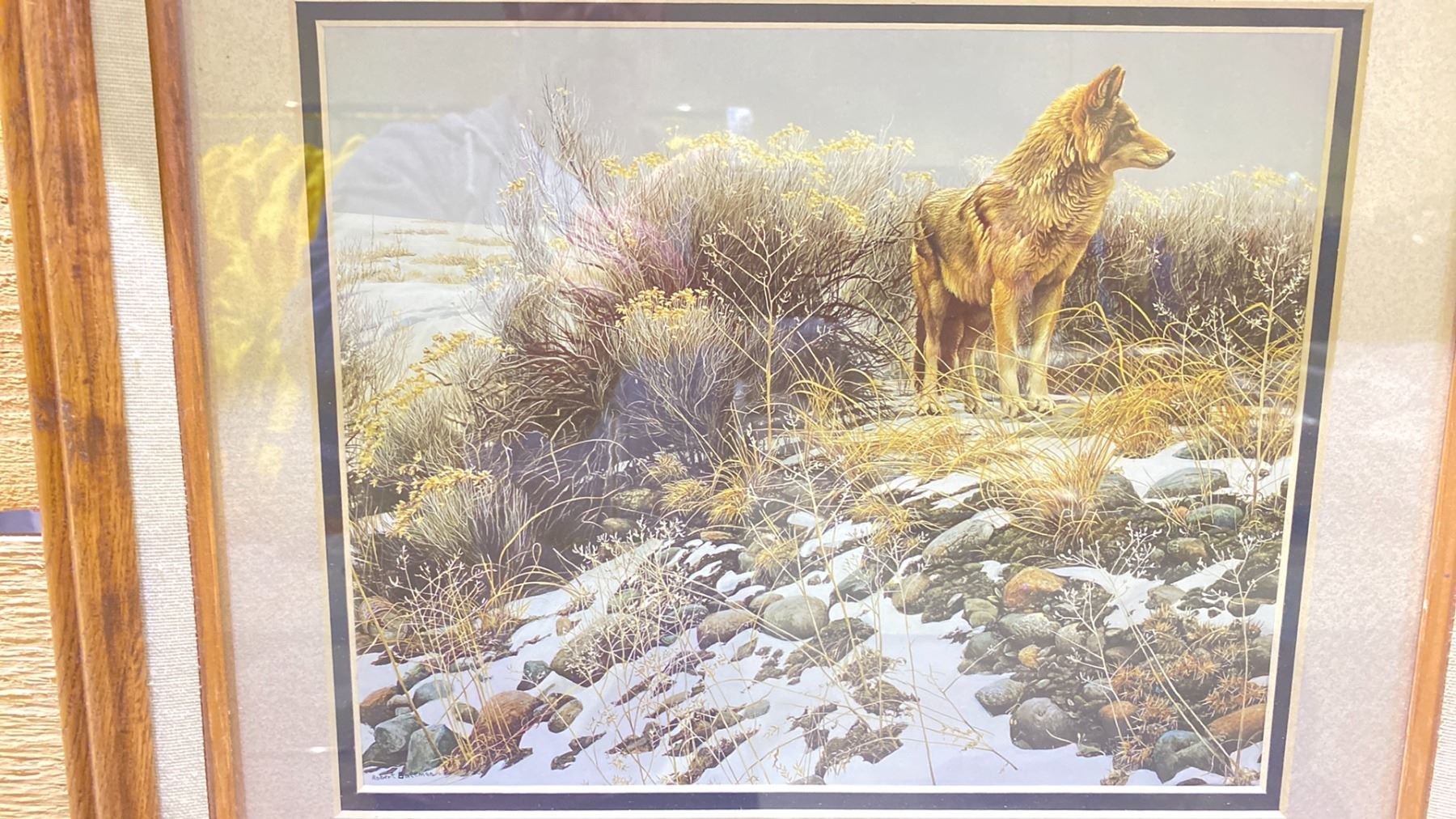 ROBERT BATEMAN "COYOTE IN WINTER SAGE" PRINT 17 1/2" X 14 1/2" FRAMED