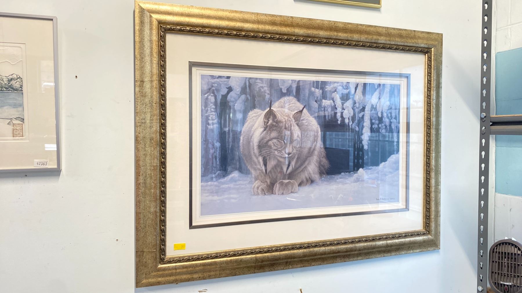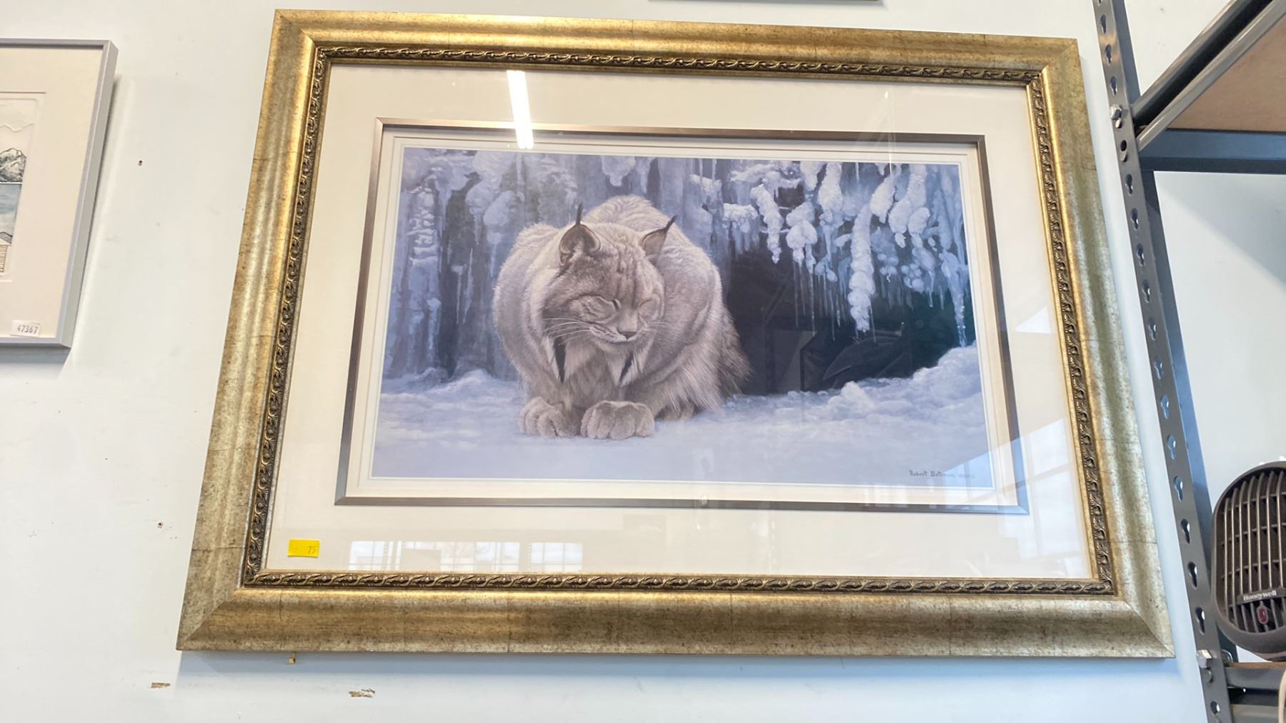 ROBERT BATEMAN "DOZING LYNX" PRINT - APPROX. 47" X 35" FRAMED