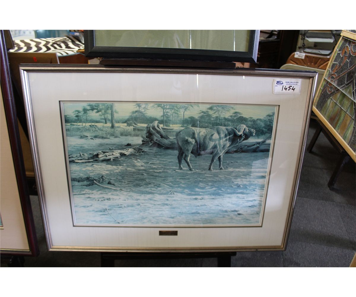 ROBERT BATEMAN FRAMED PRINT "BUFFALO AT AMBASELI"