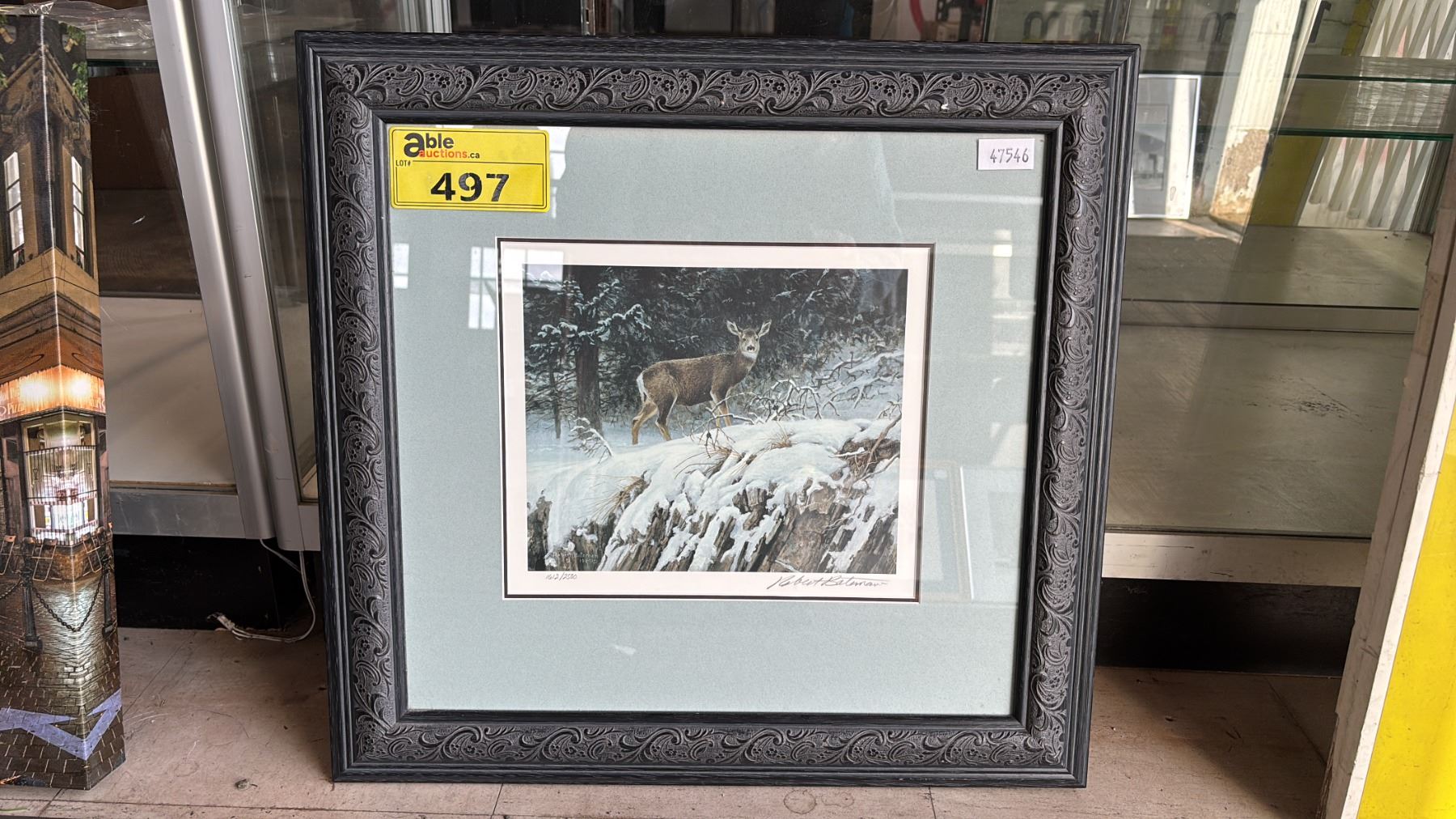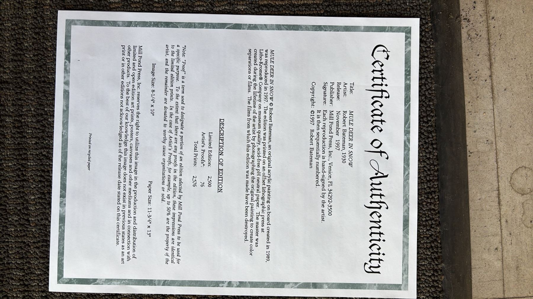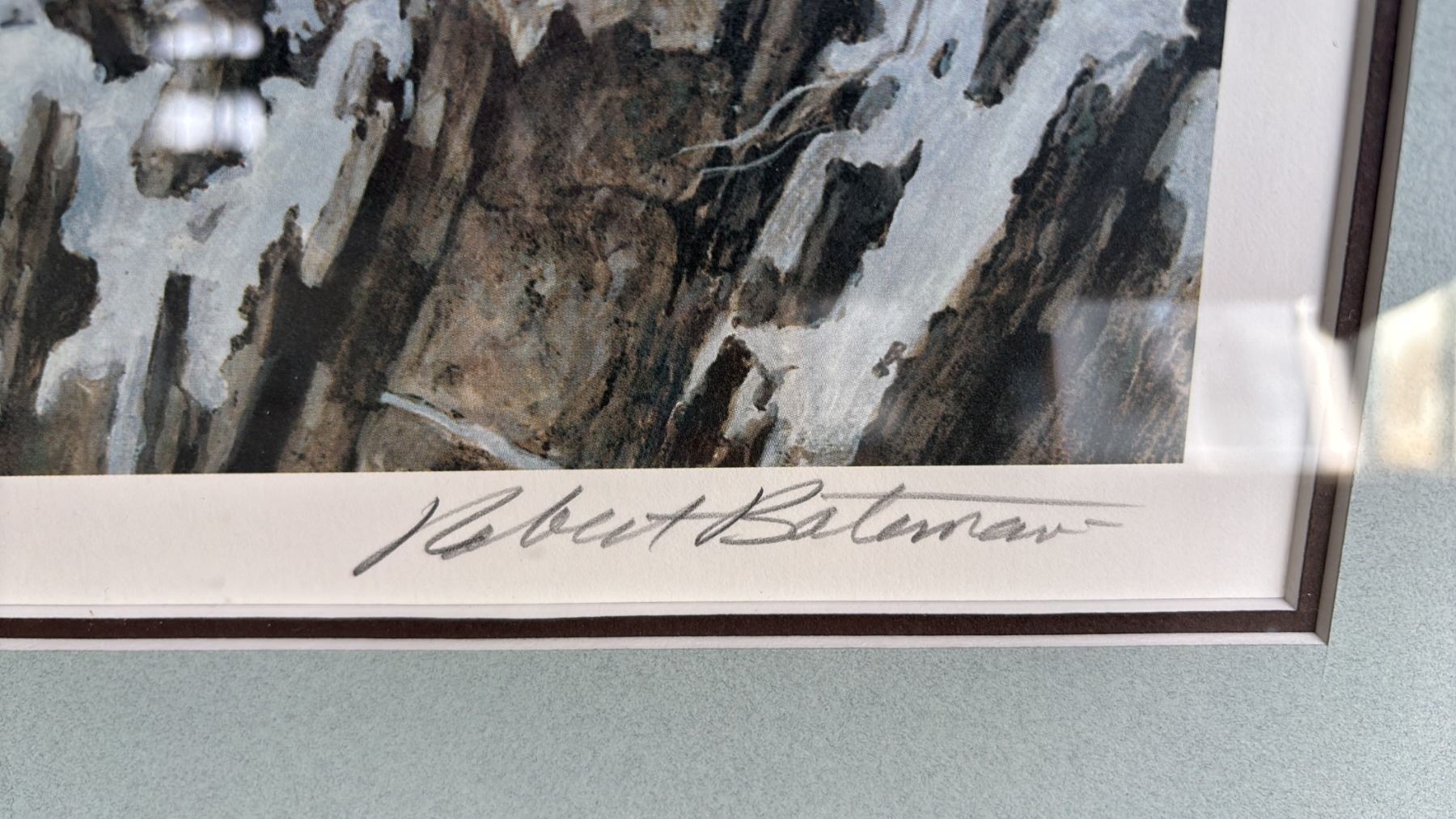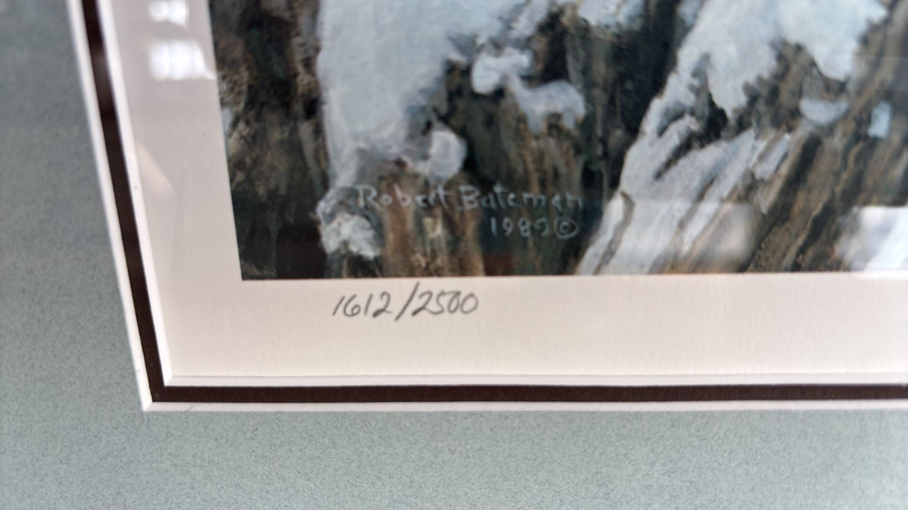 ROBERT BATEMAN FRAMED "THE MULE DEER IN SNOW" PRINT - 1612/2500