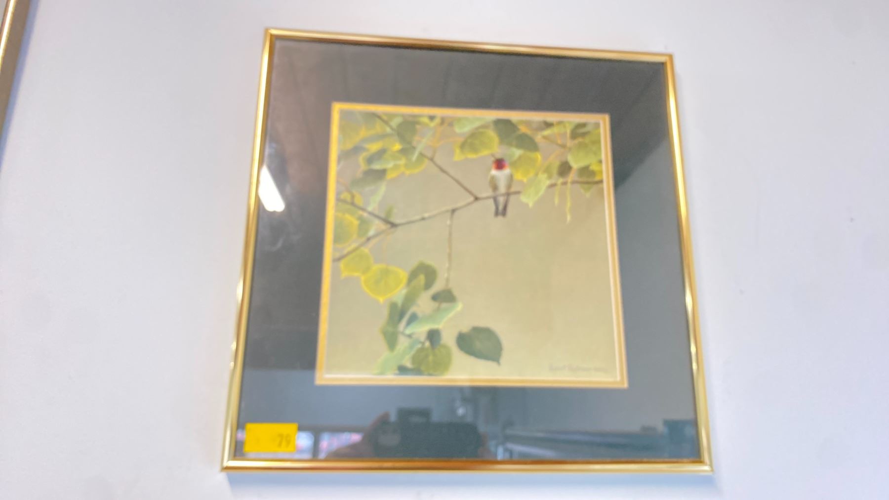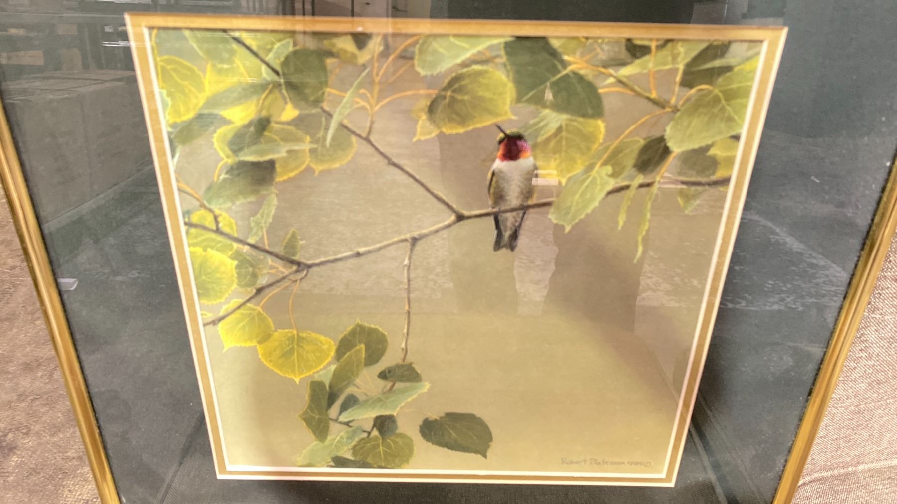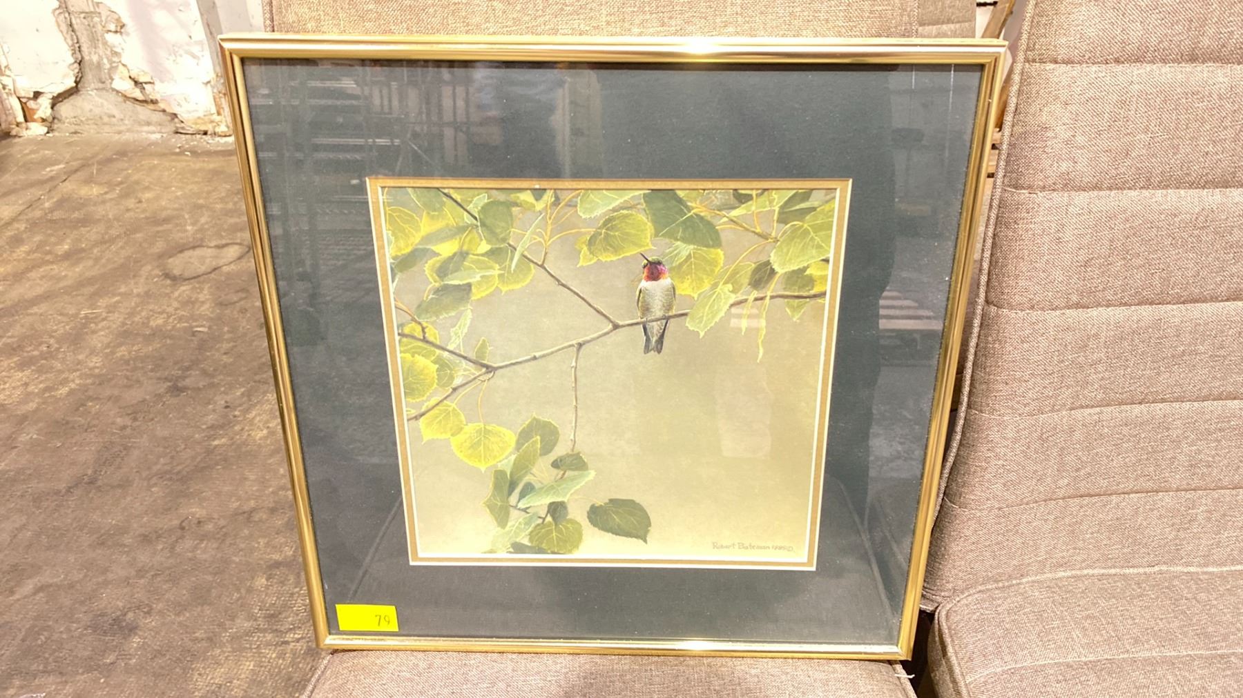 ROBERT BATEMAN "MALE RUBY THROATED HUMMINGBIRD" PRINT - APPROX. 14 1/4" X 14" FRAMED