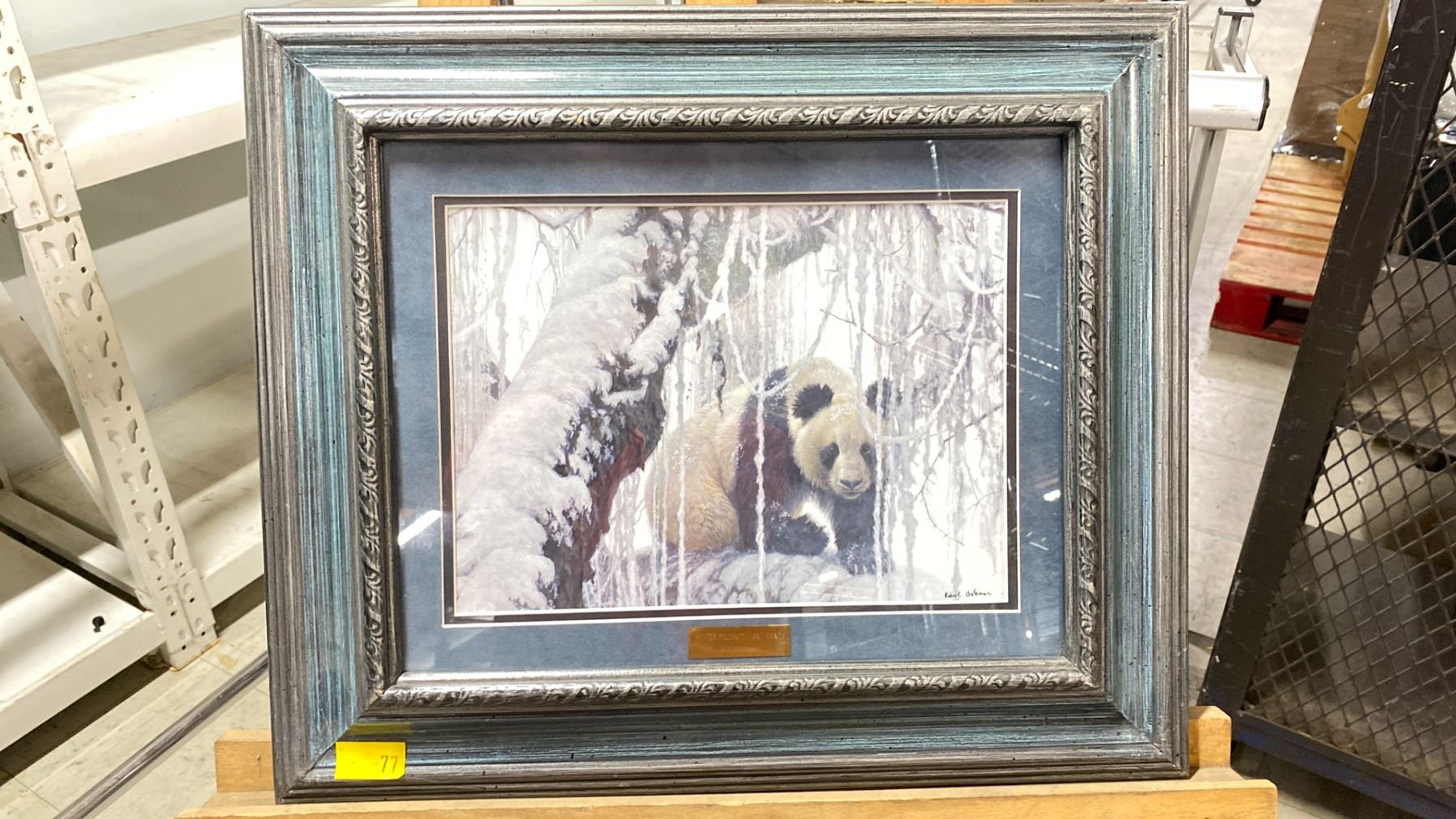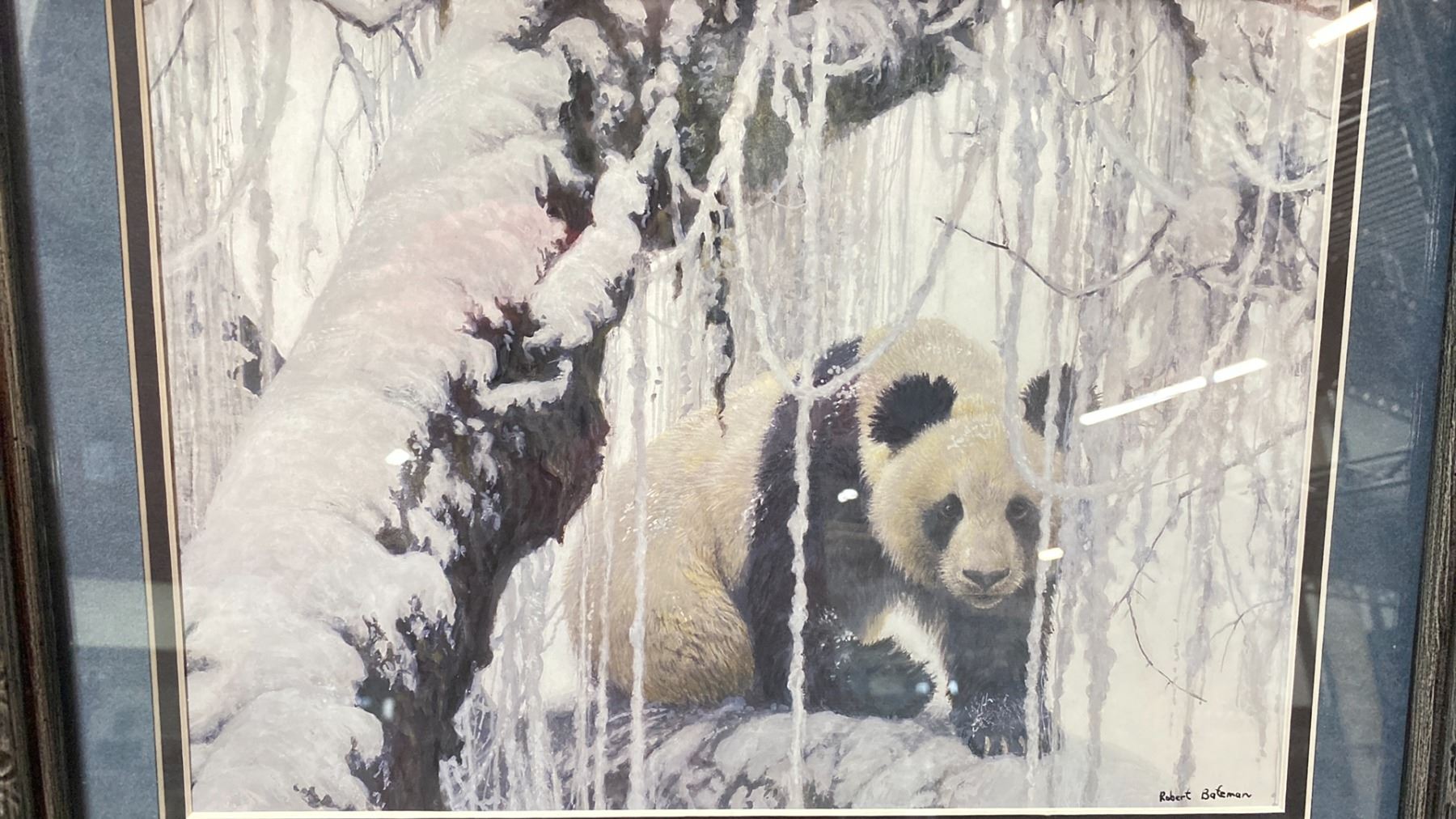 ROBERT BATEMAN "WINTER FILIGREE GIANT PANDA" PRINT - APPROX. 16" X 19" FRAMED