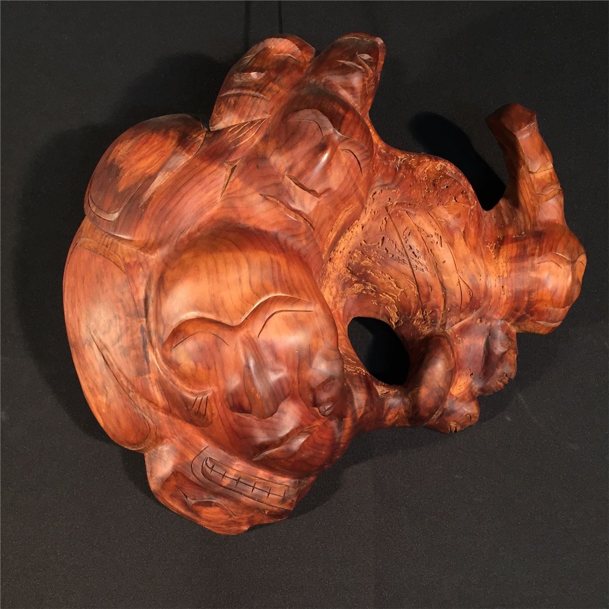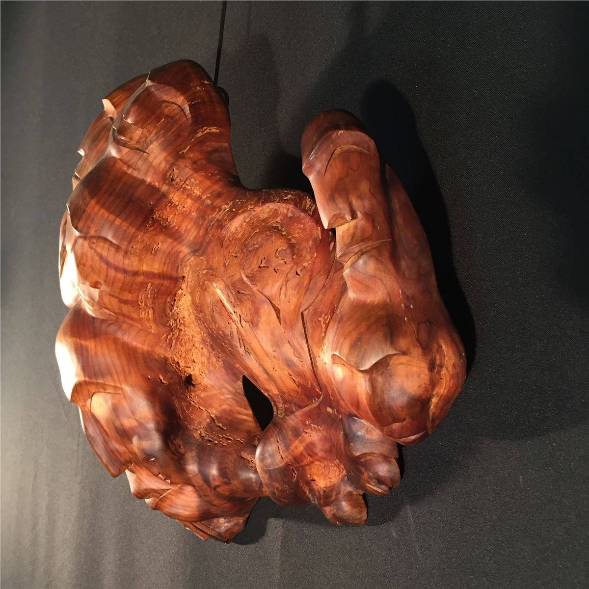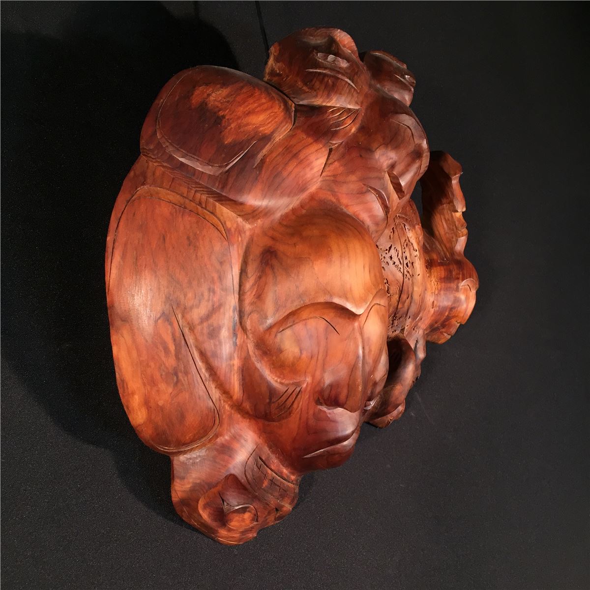 ROBERT KELLY, STO:LO, BURLWOOD CARVING FEATURING 9 FIGURES 16" WIDE X 15" TALL