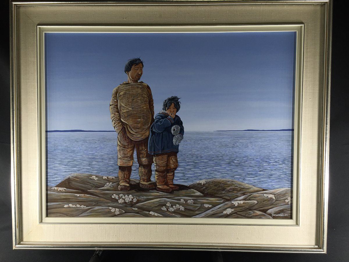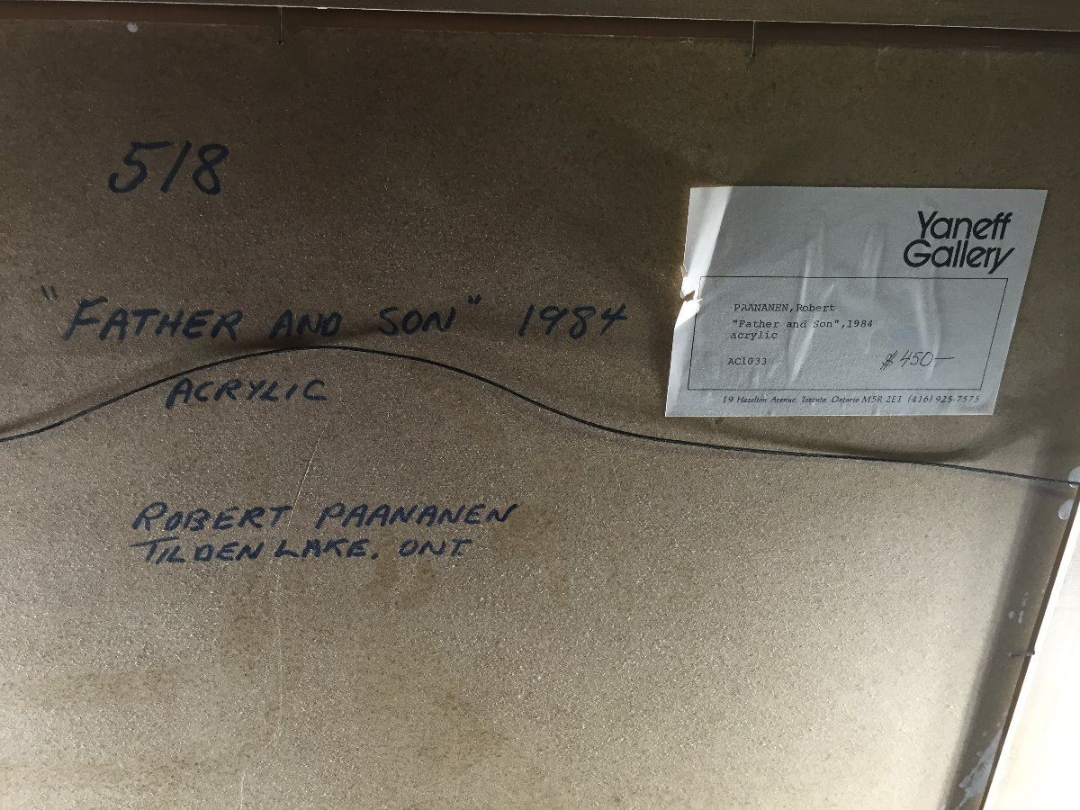 ROBERT PAANANEN (TILDEN LAKE, ONT) "FATHER AND SON" ACRYLIC ON BOARD 18" X 24"