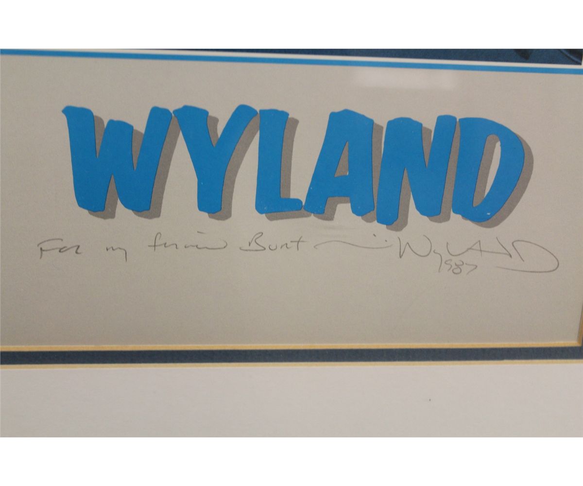 ROBERT WYLAND FRAMED BIO WITH ORIGINAL DEDICATION- "FOR MY FRIEND BURT". SIGNED LOWER RIGHT