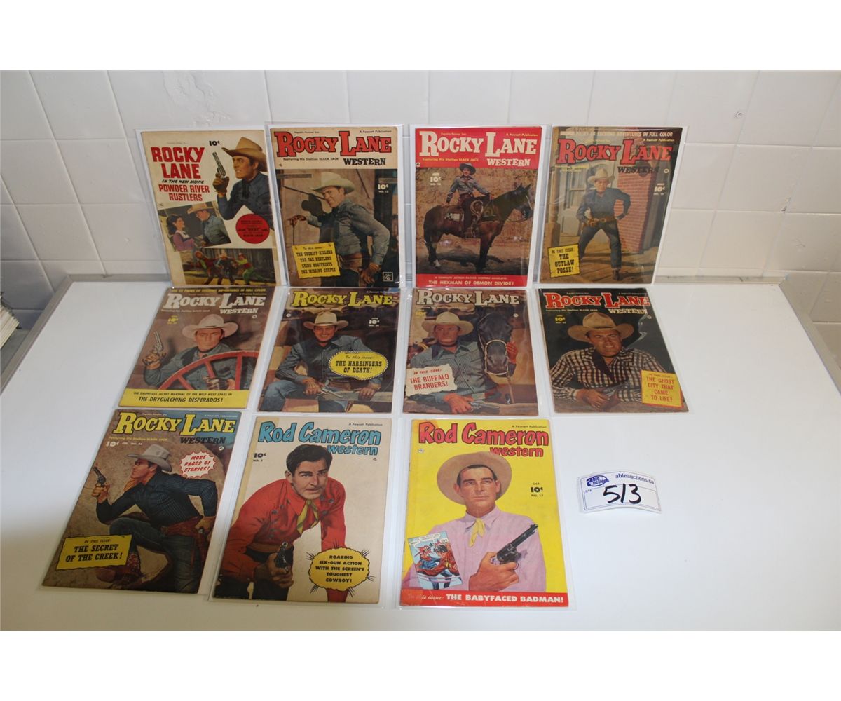 ROCKY LANE WESTERN RUN OF 9 DIFFERENT ISSUES BETWEEN #1-46 & ROD CAMERON WESTERN #1 & 17 (1950'S) (SOME CANADIAN EDITIONS) AWESOME PHOTO COVERS - MIXED GRADES, SOLID LOT!