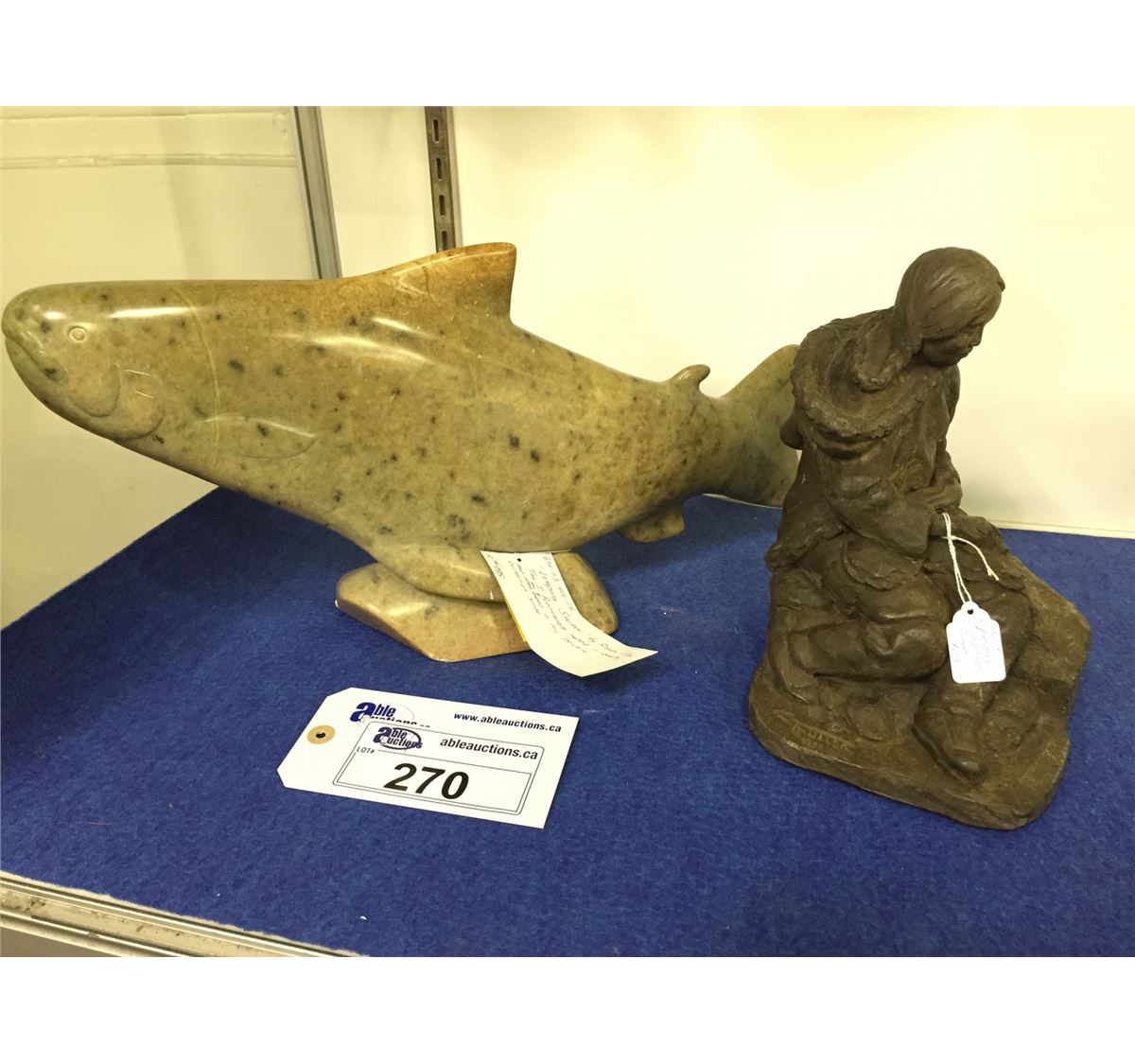 ROGER COX, "LEAPING SALMON" SOAPSTONE CARVING
