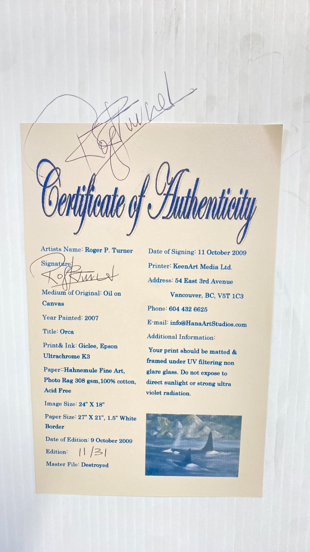 ROGER P. TURNER "ORCA" LIMITED EDITION SIGNED PRINT #11/31 - APPROX. 32 1/4" X 26 3/4"" FRAMED