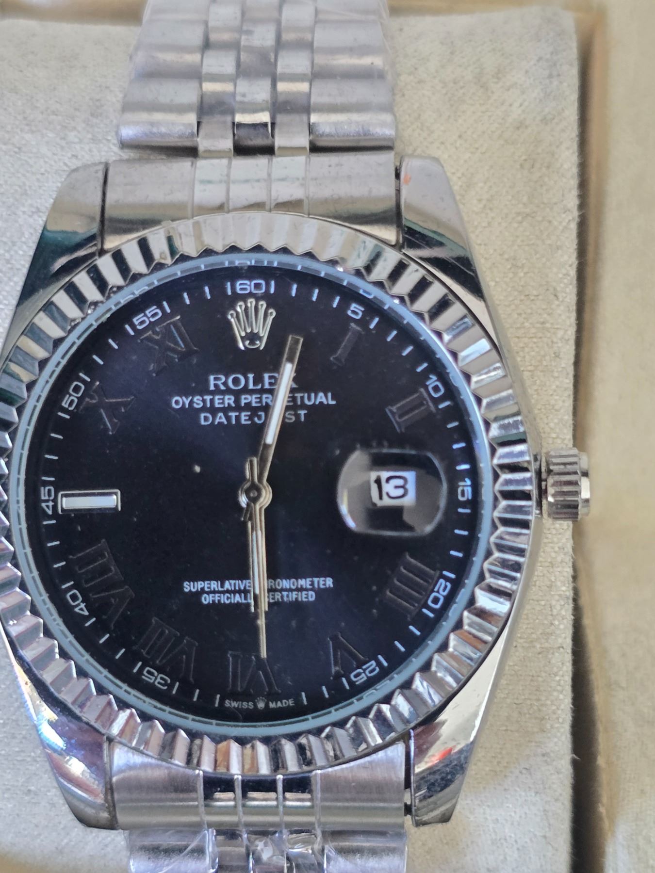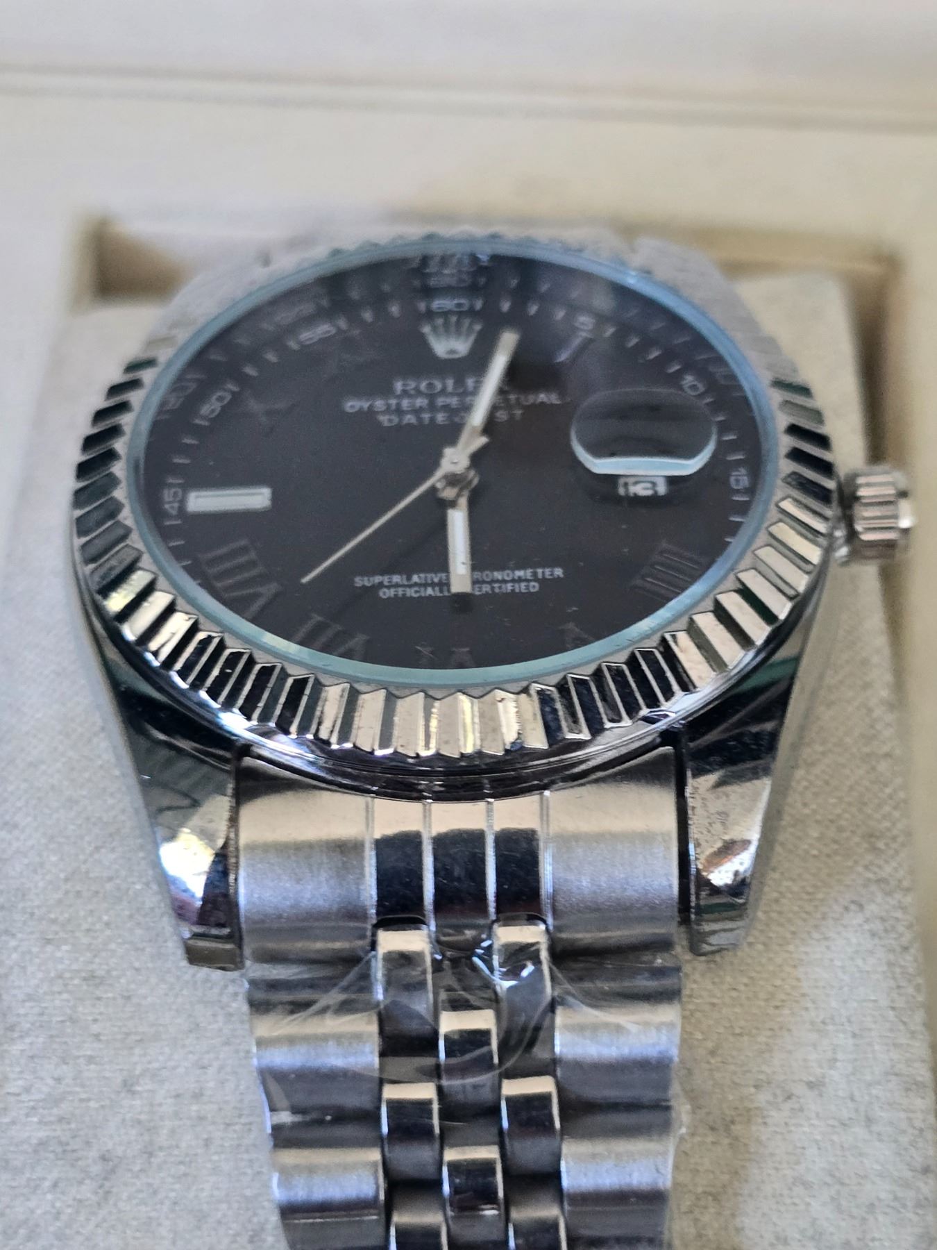 ROLEX DATE-JUST BLACK DIAL WITH ROMAN NUMERALS INDEXES REF. 178274 ROLEX REPLICA WATCH ORIGINAL HAS STAINLESS-STEEL CASE AND JUBILEE BRACELET FULL SET WITH BOX, PAPERS AND BAG.