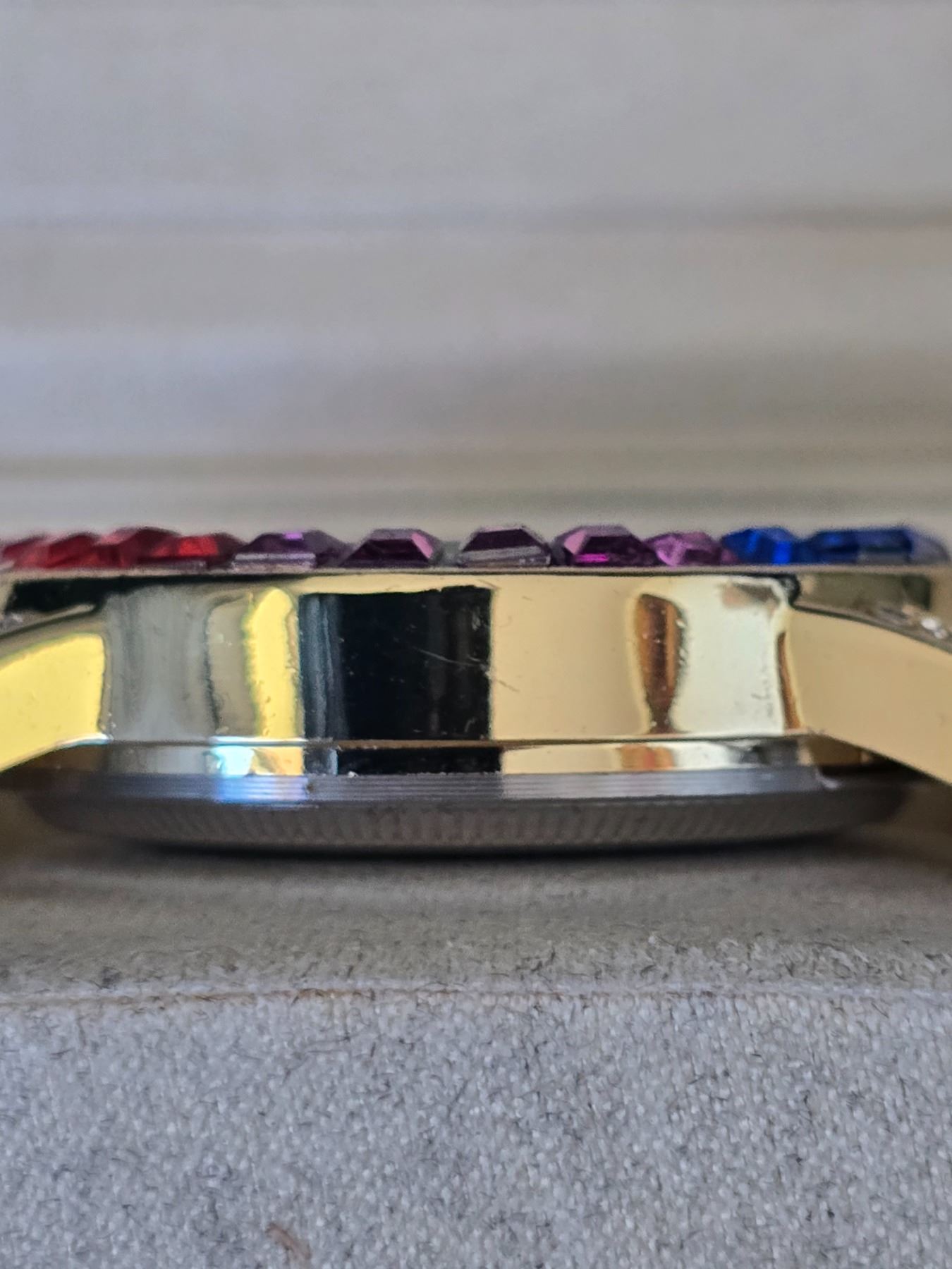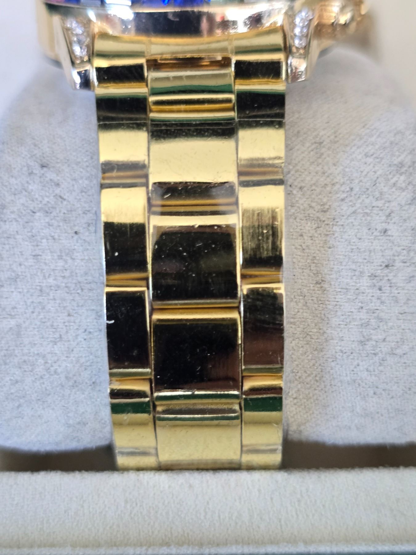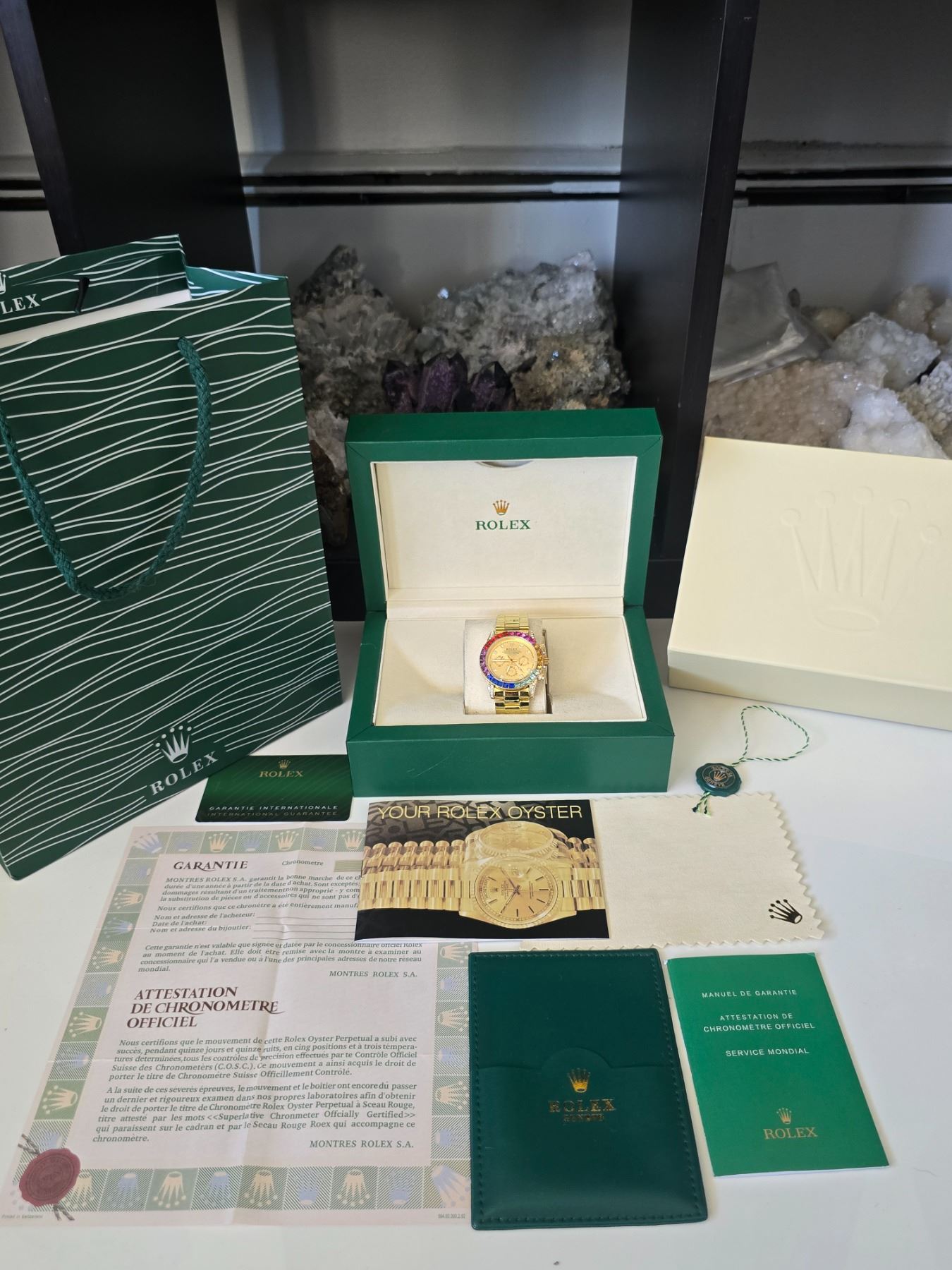 ROLEX OYSTER PERPETUAL COSMOGRAPH DAYTONA REF.116598 RBOW ROLEX REPLICA WATCH GOLDEN DIAL WITH DIAMOND INDEX AND DIAMOND BEZEL ORIGINAL HAS 18K YELLOW GOLD CASE AND OYSTER BRACELET FULL SET WITH BOX, PAPERS AND BAG