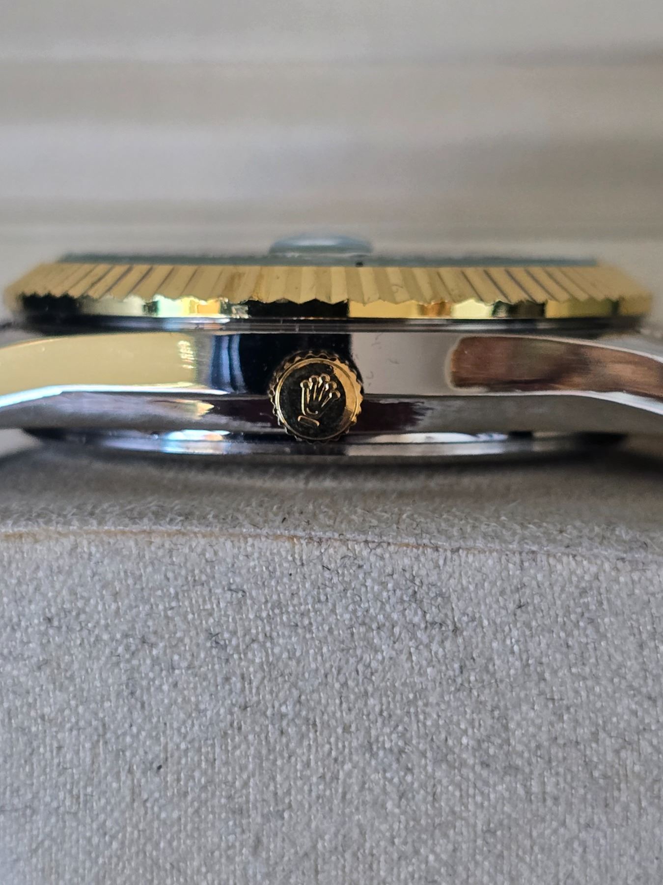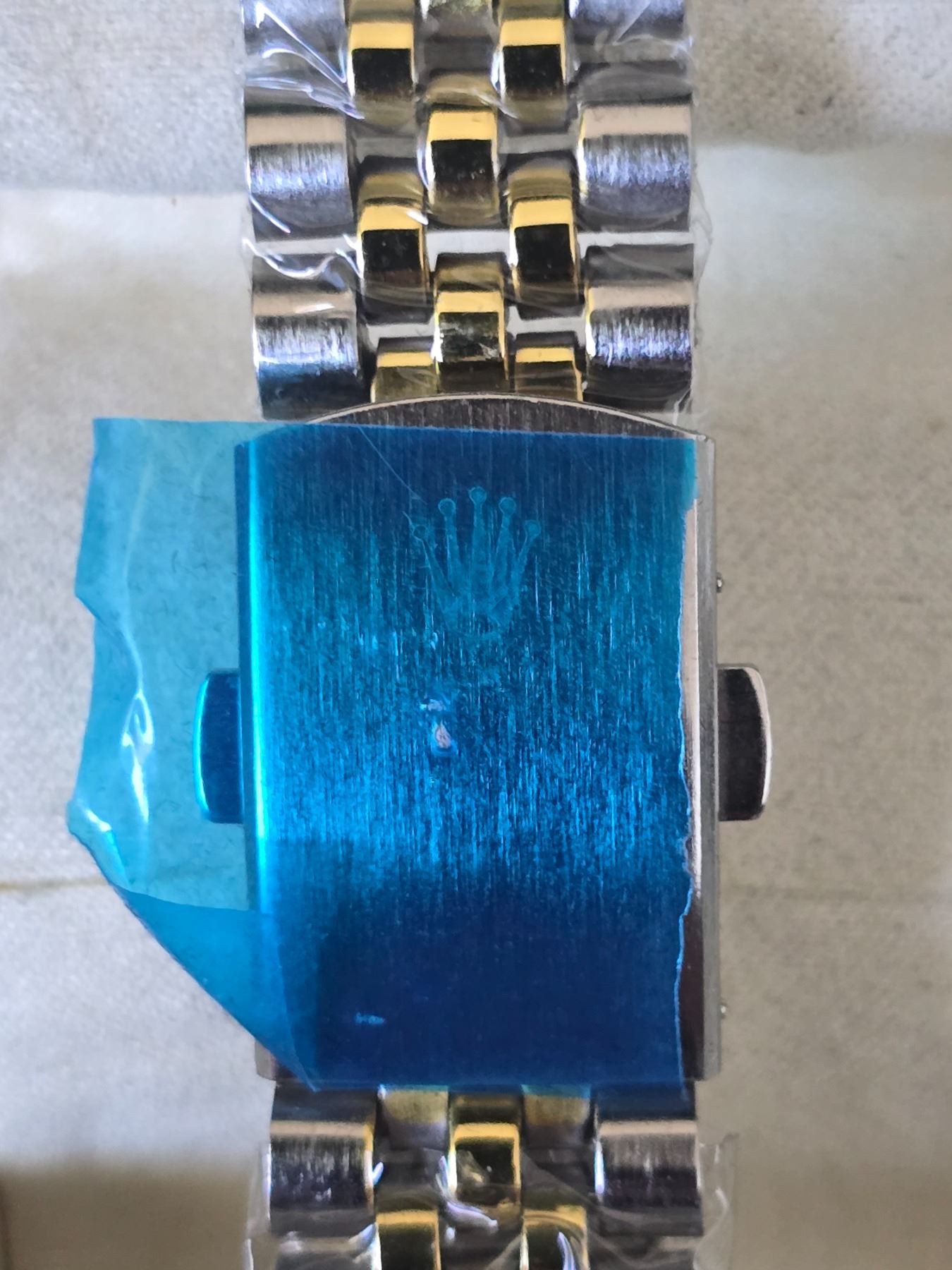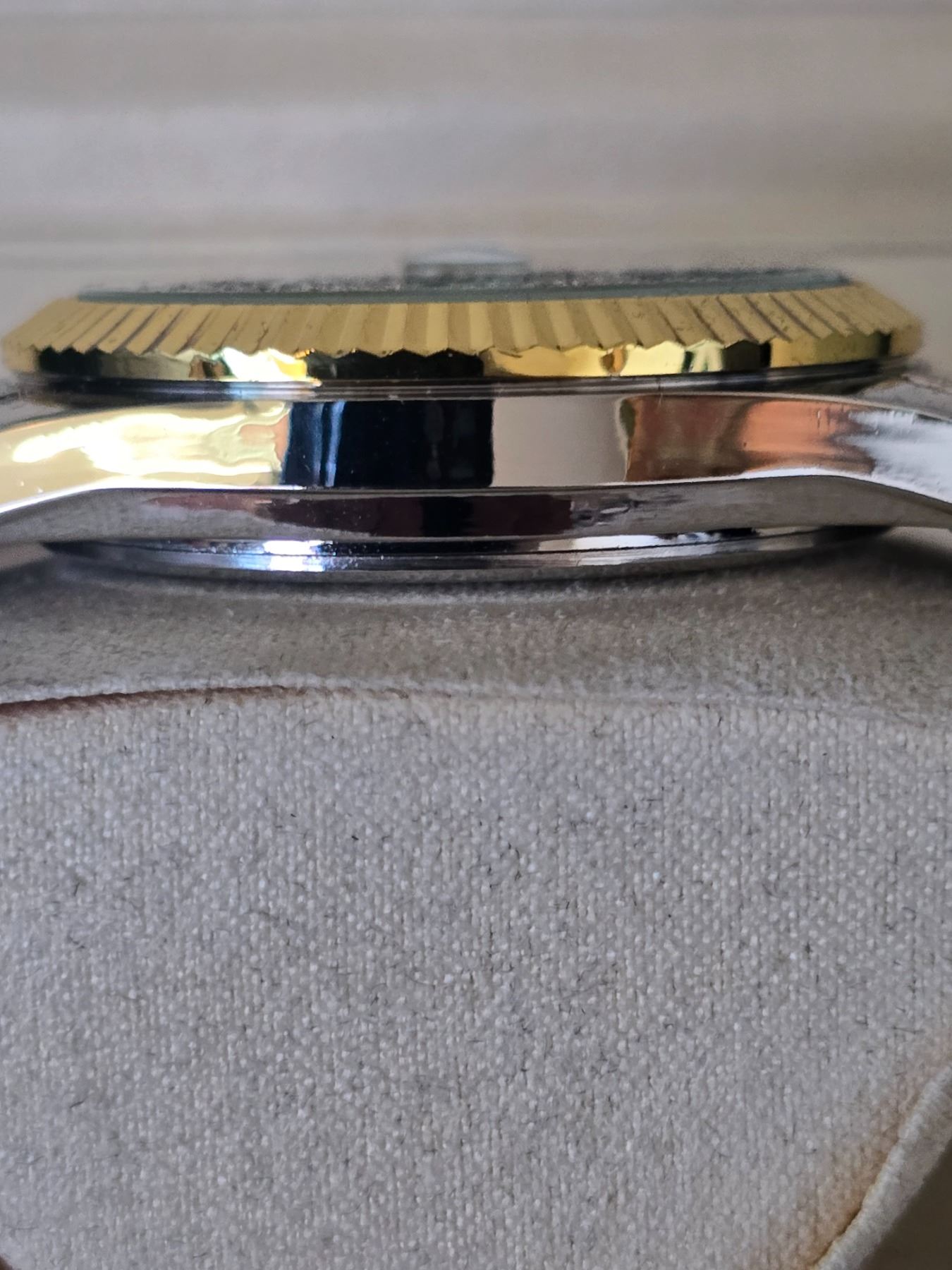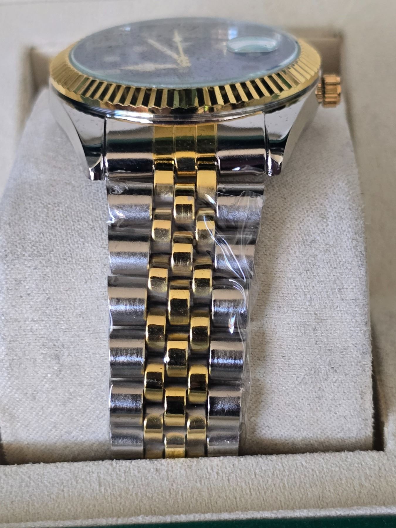 ROLEX SUBMARINER 40 MM BLUE DIAL WITH WHITE/GOLD INDEXES ROLEX REPLICA WATCH ORIGINAL HAS 18K YELLOW GOLD WITH BEZEL. 2 TONE CASE AND JUBILEE BRACELET. FULL SET WITH BOX, PAPERS AND BAG.