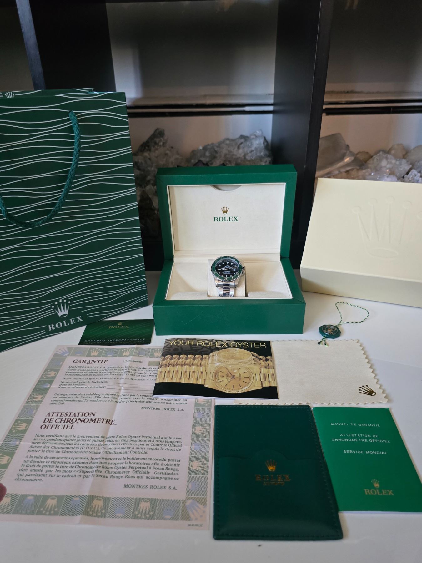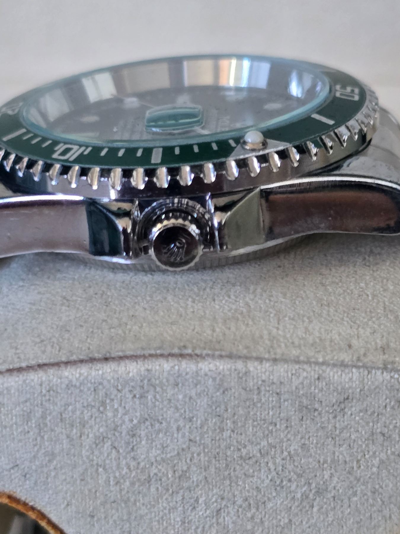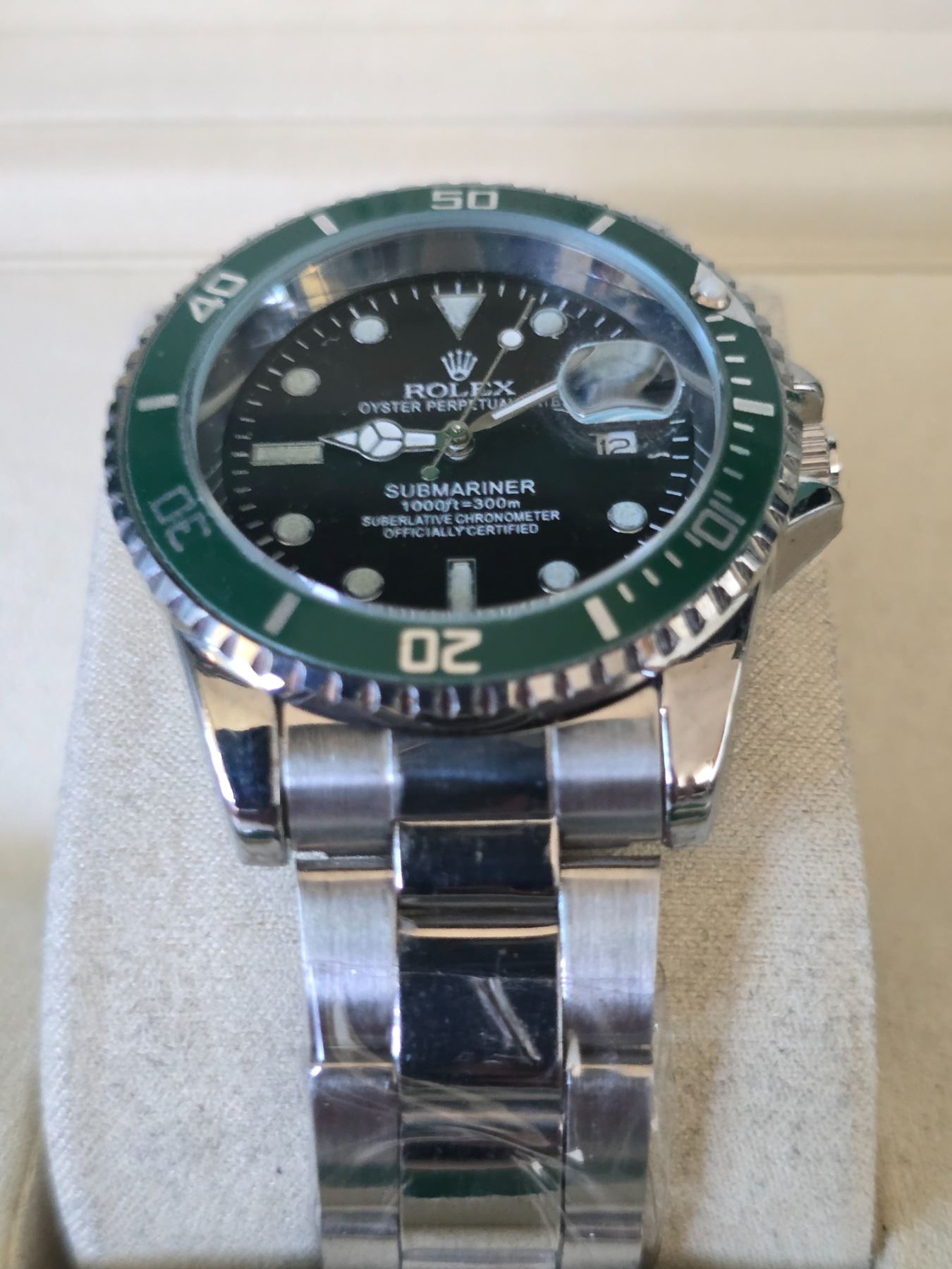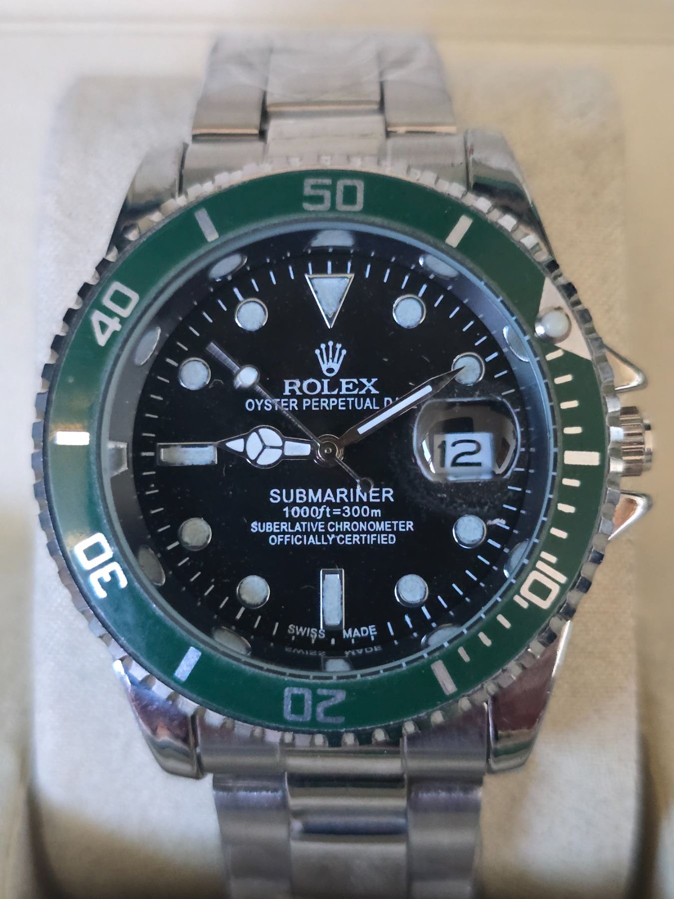 ROLEX SUBMARINER DATE 40 MM "HULK" MODEL 116610LV REPLICA WATCH BLACK DIAL AND GREEN ROTATING BEZEL. STAINLESS STEEL CASE AND OYSTER BRACELET BRAND NEW WITH FULL SET: BOX, PAPERS AND BAG
