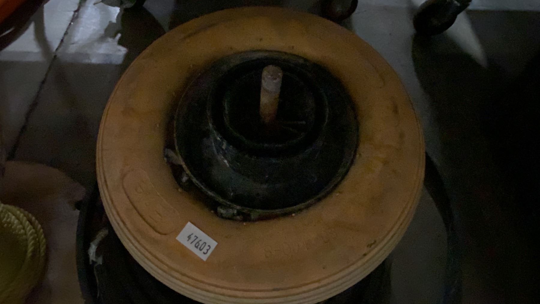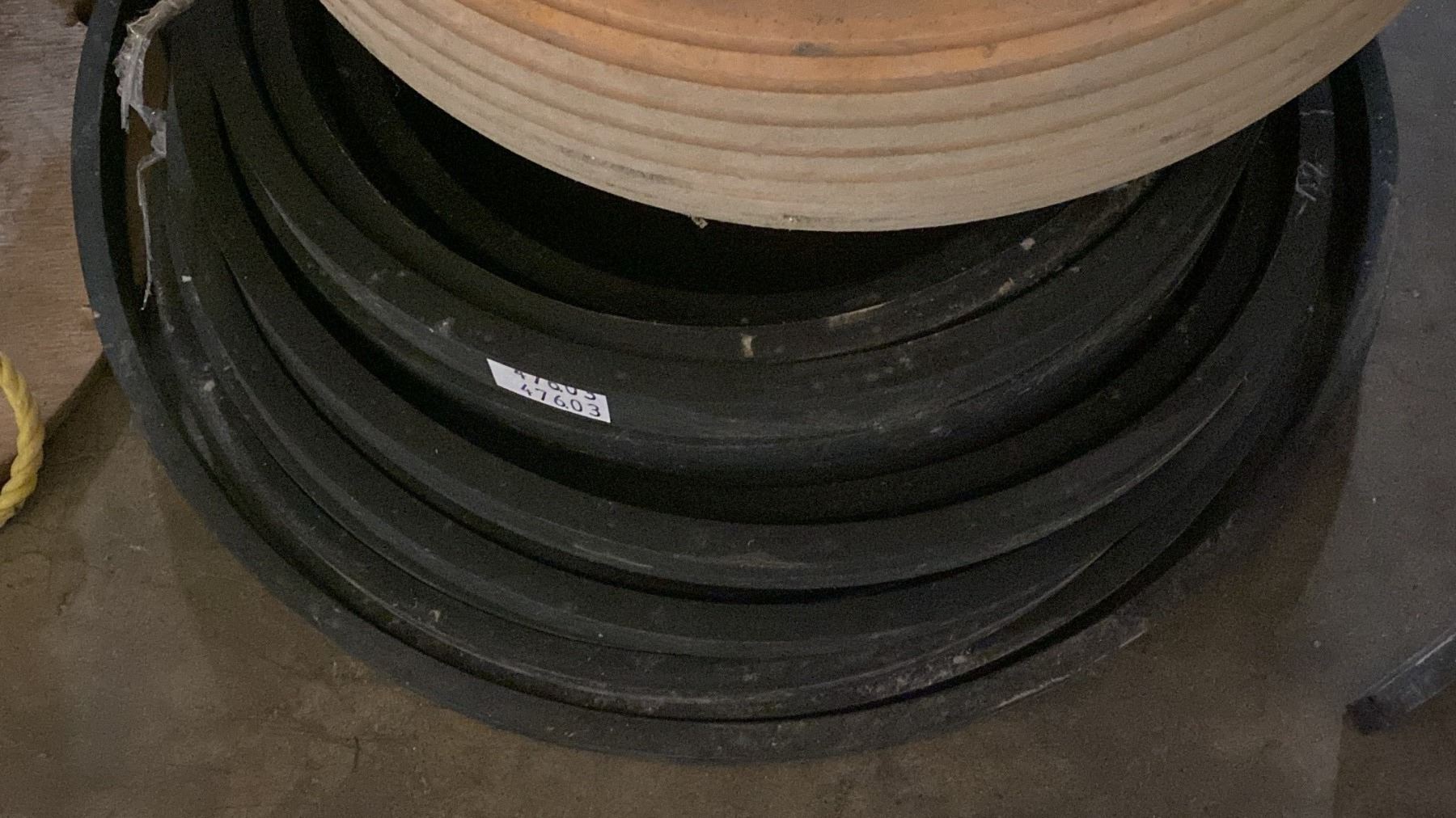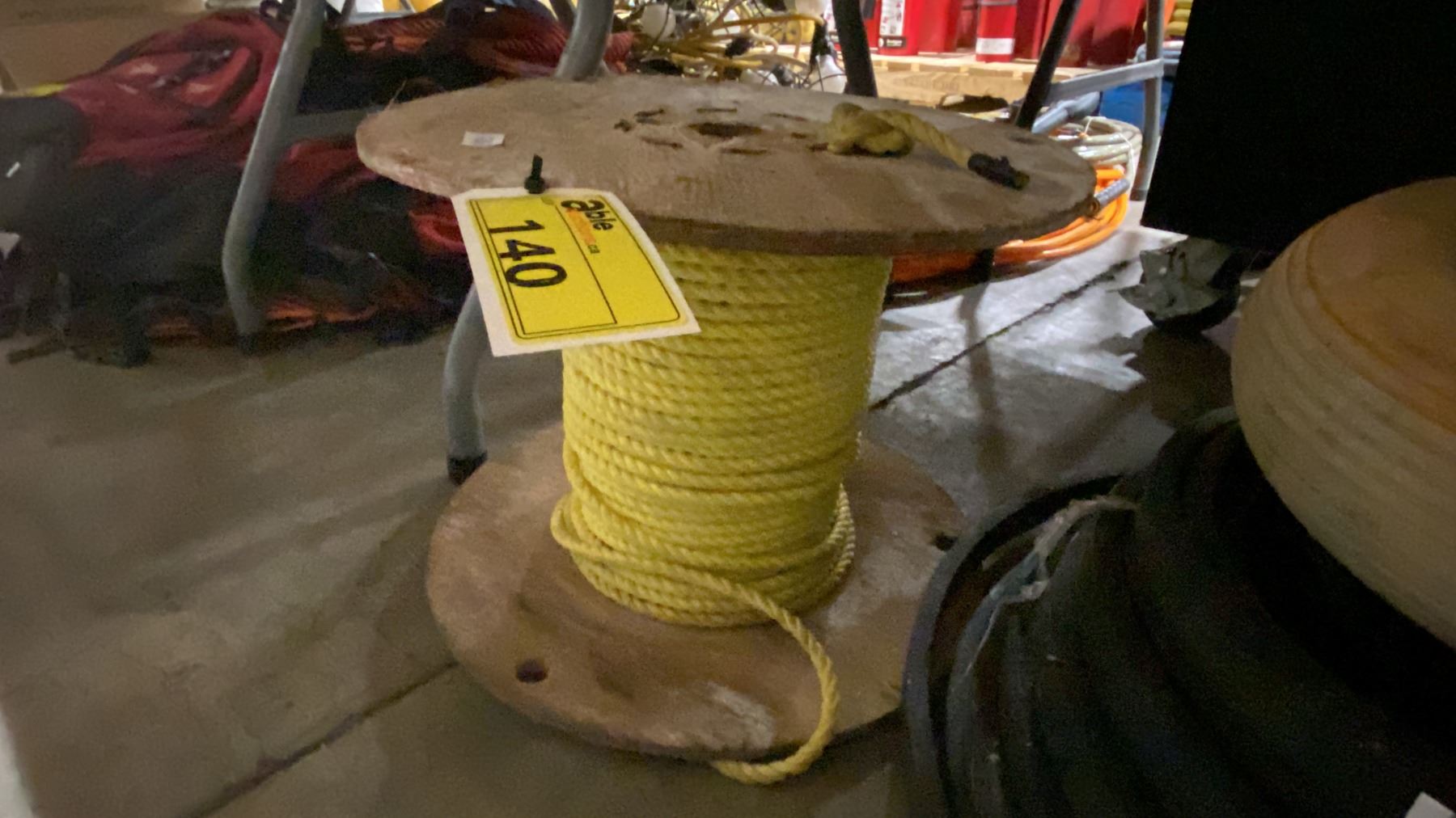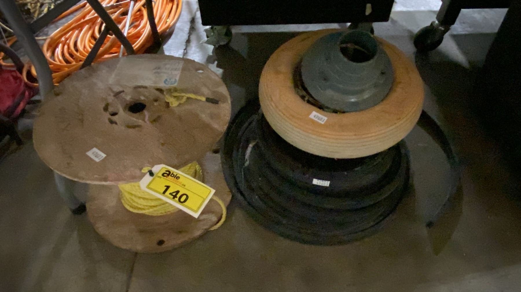 ROLL OF RUBBER STRIP, PARTIAL SPOOL OF YELLOW ROPE & PNEUMATIC REPLACEMENT TIRE