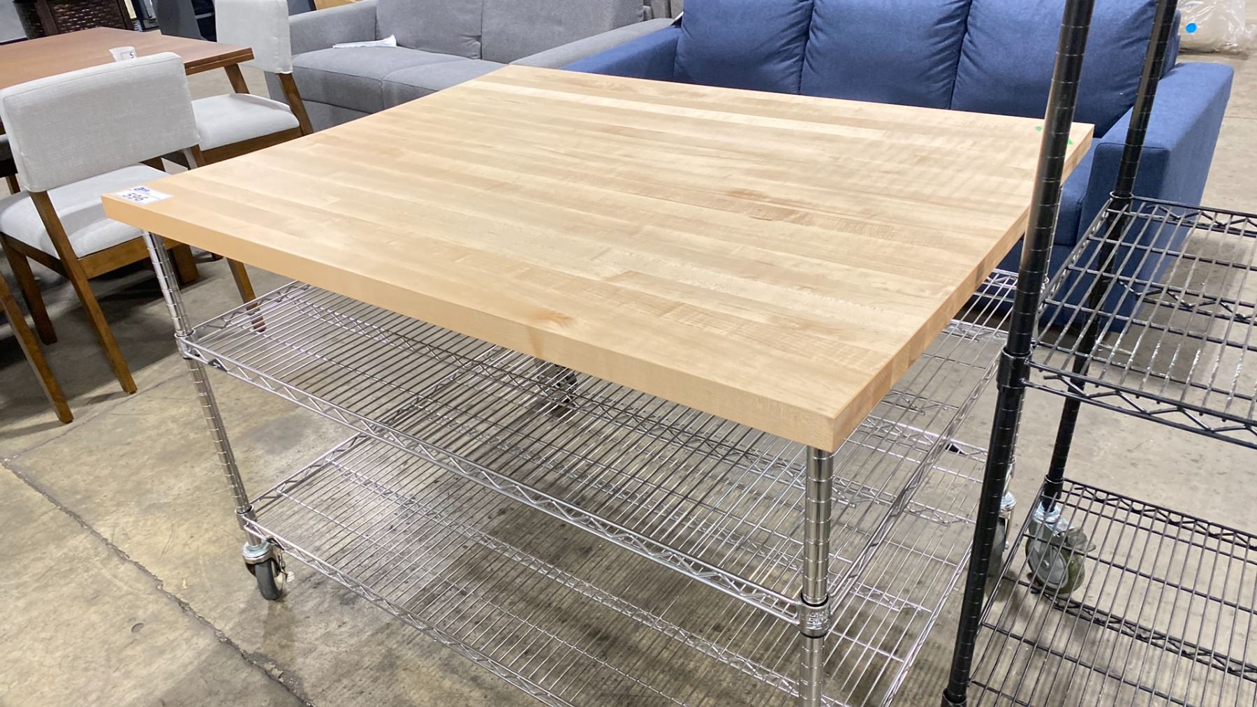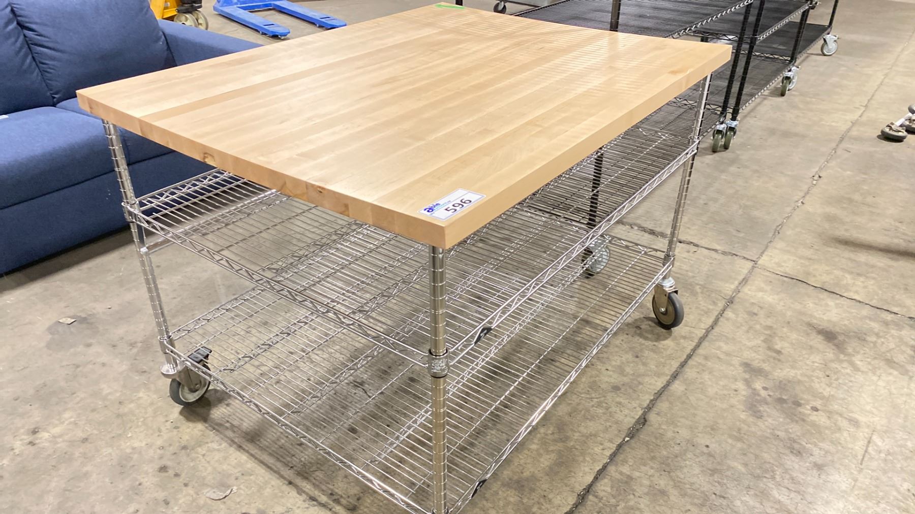 ROLLING 3 TIER RACK WITH BUTCHER BLOCK TABLE APPROX 49X38X35"