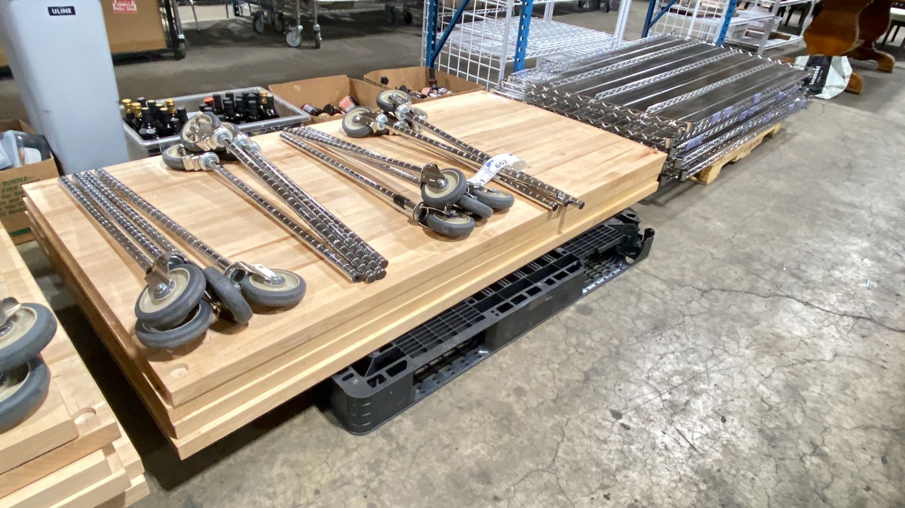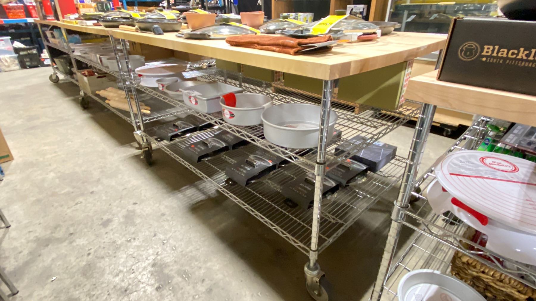 ROLLING 3 TIER RACK WITH BUTCHER BLOCK TABLE APPROX 73 X 38 X 35"