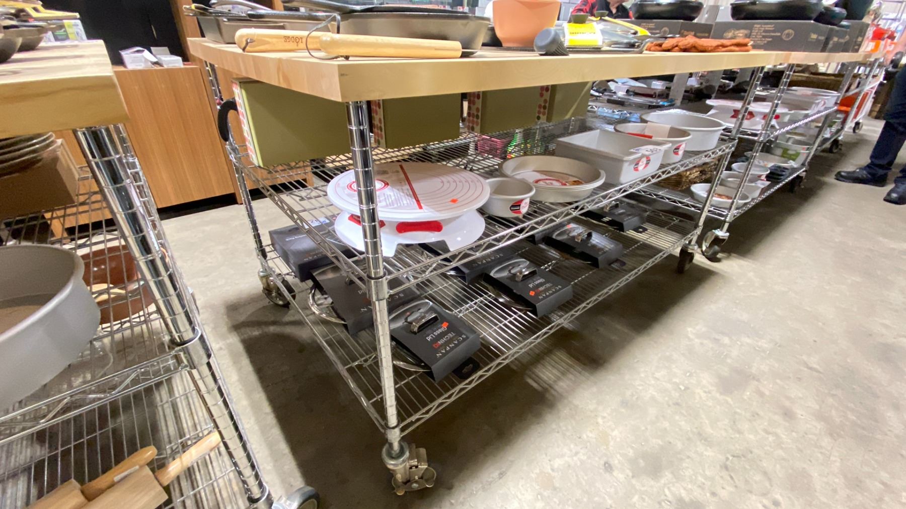 ROLLING 3 TIER RACK WITH BUTCHER BLOCK TABLE APPROX 73 X 38 X 35