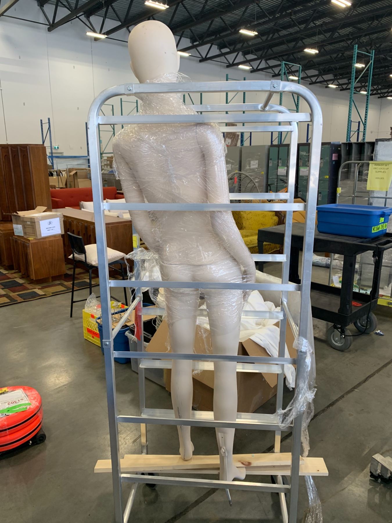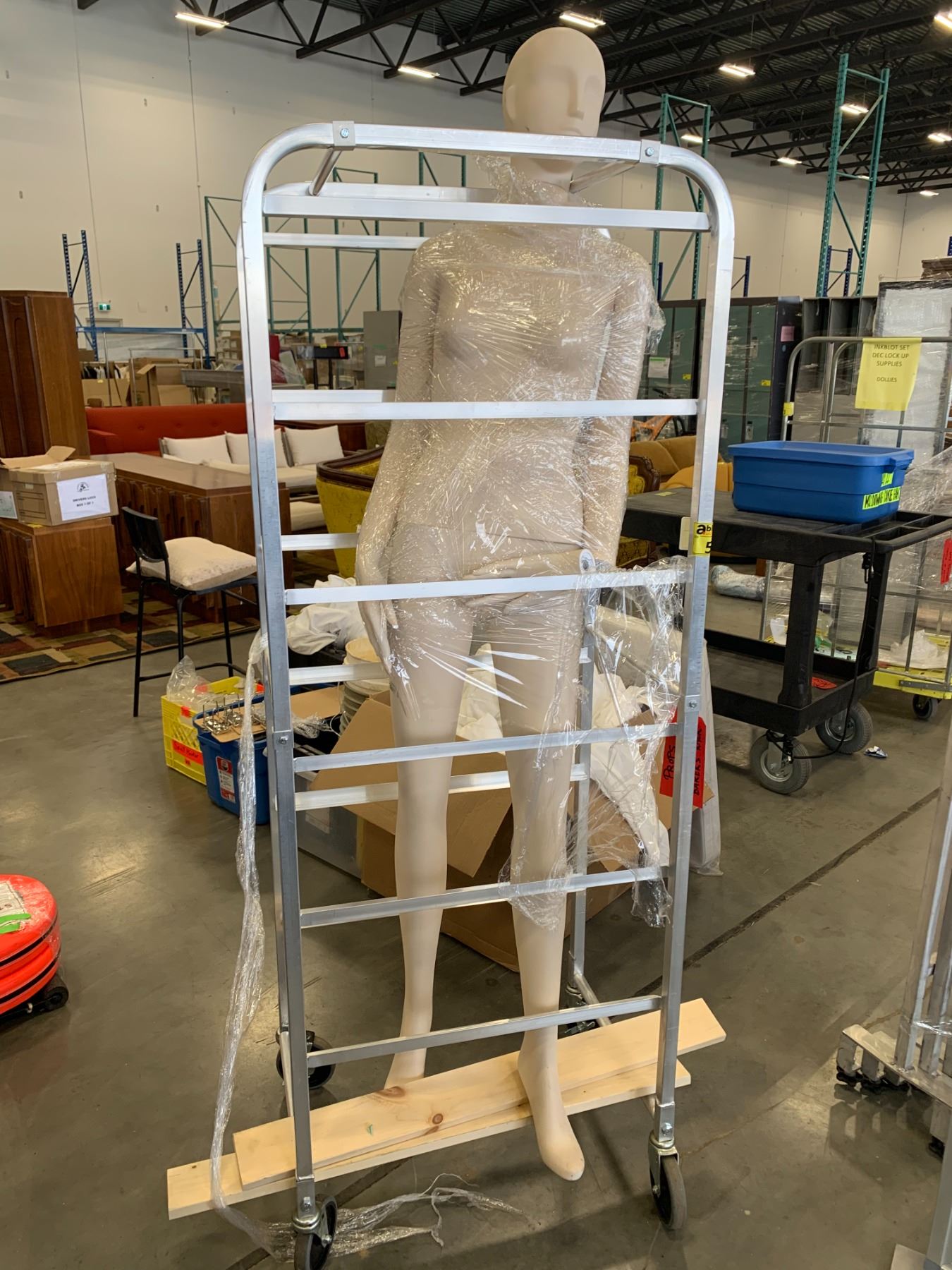 ROLLING METAL CART WITH MANNIQUIN