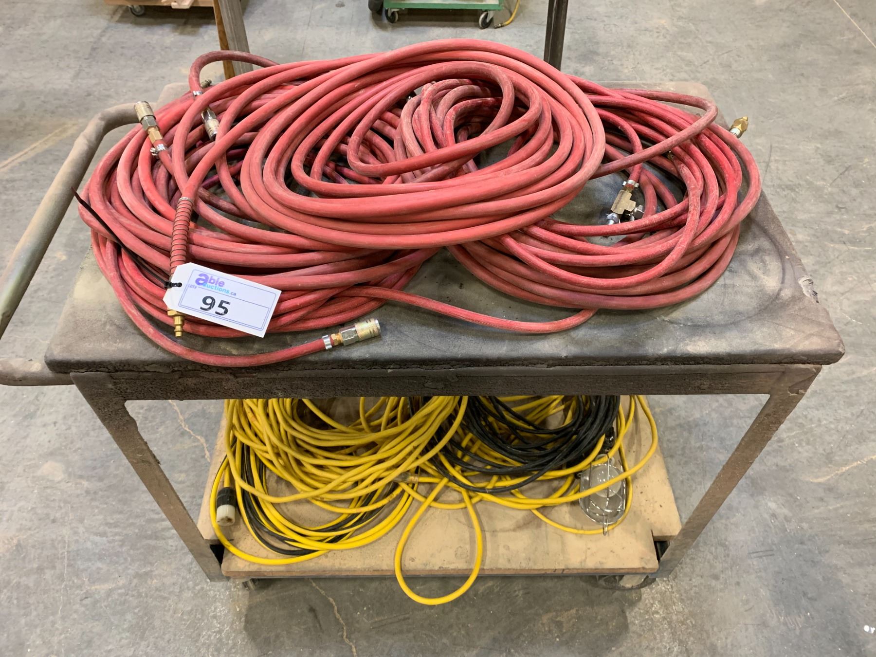ROLLING METAL SHOP CART WITH AIRLINE HOSES & EXTENSION CORDS