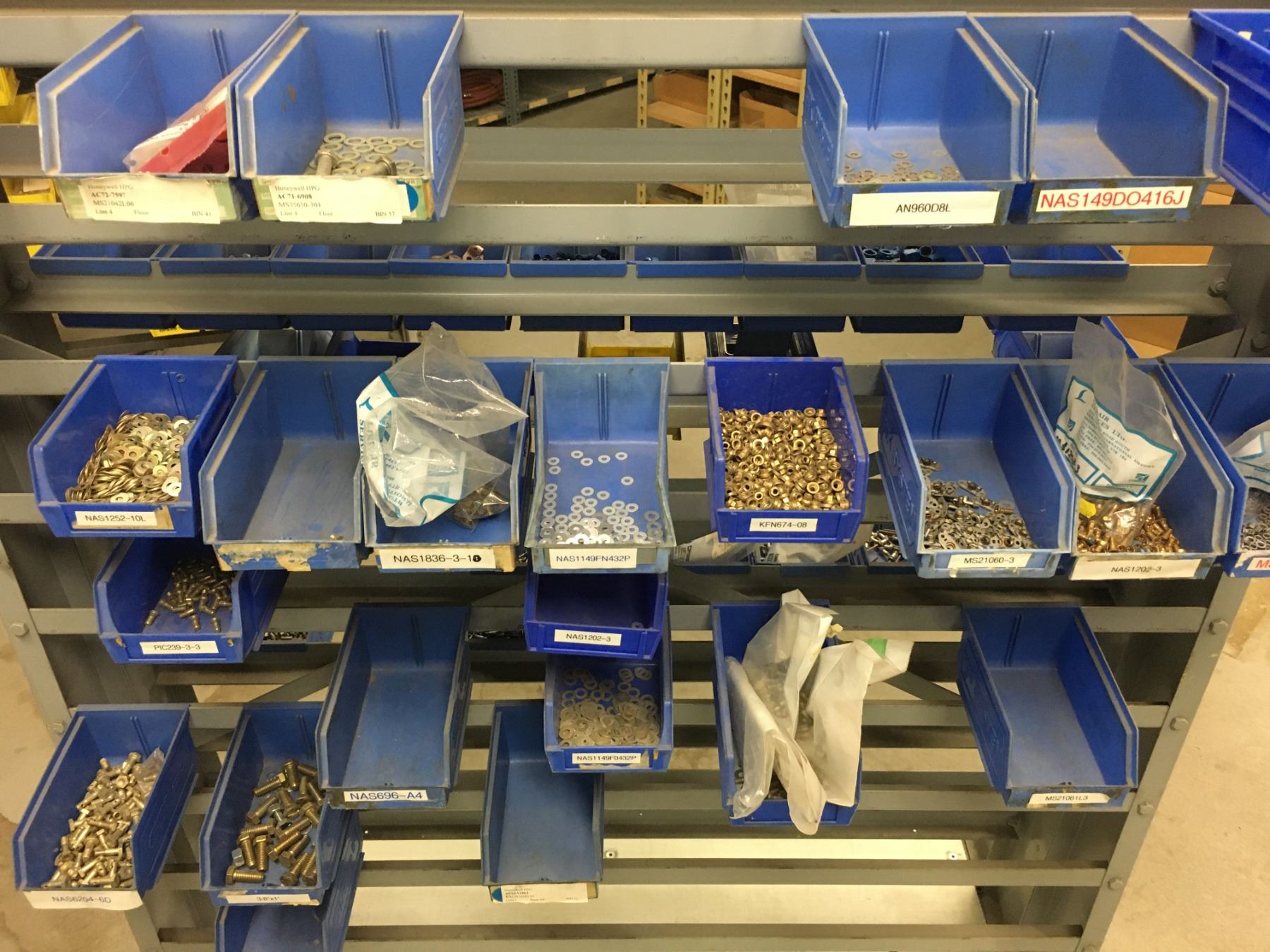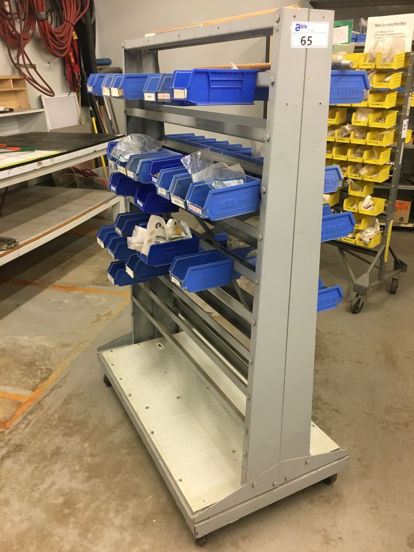ROLLING PARTS (BLUE BINS) ORGANIZER UNIT WITH MISCELLANEOUS BOLTS, WASHERS & OTHER HARDWARE