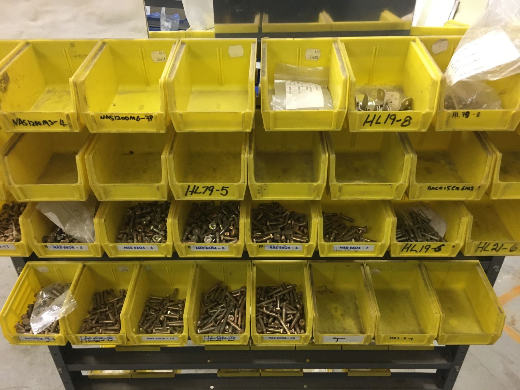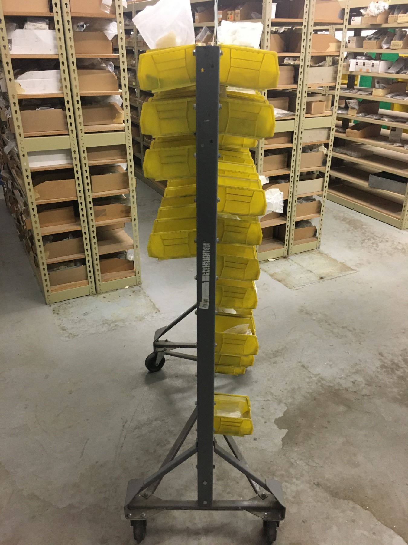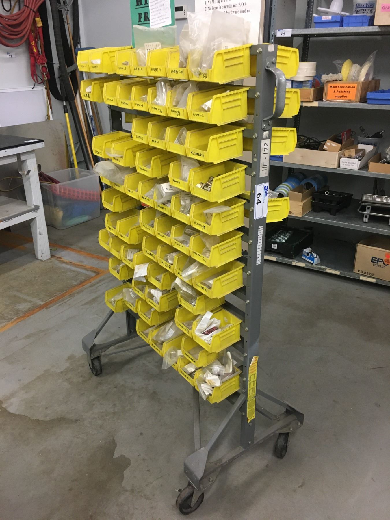 ROLLING PARTS (YELLOW BINS) ORGANIZER UNIT WITH MISCELLANEOUS BOLTS & OTHER HARDWARE