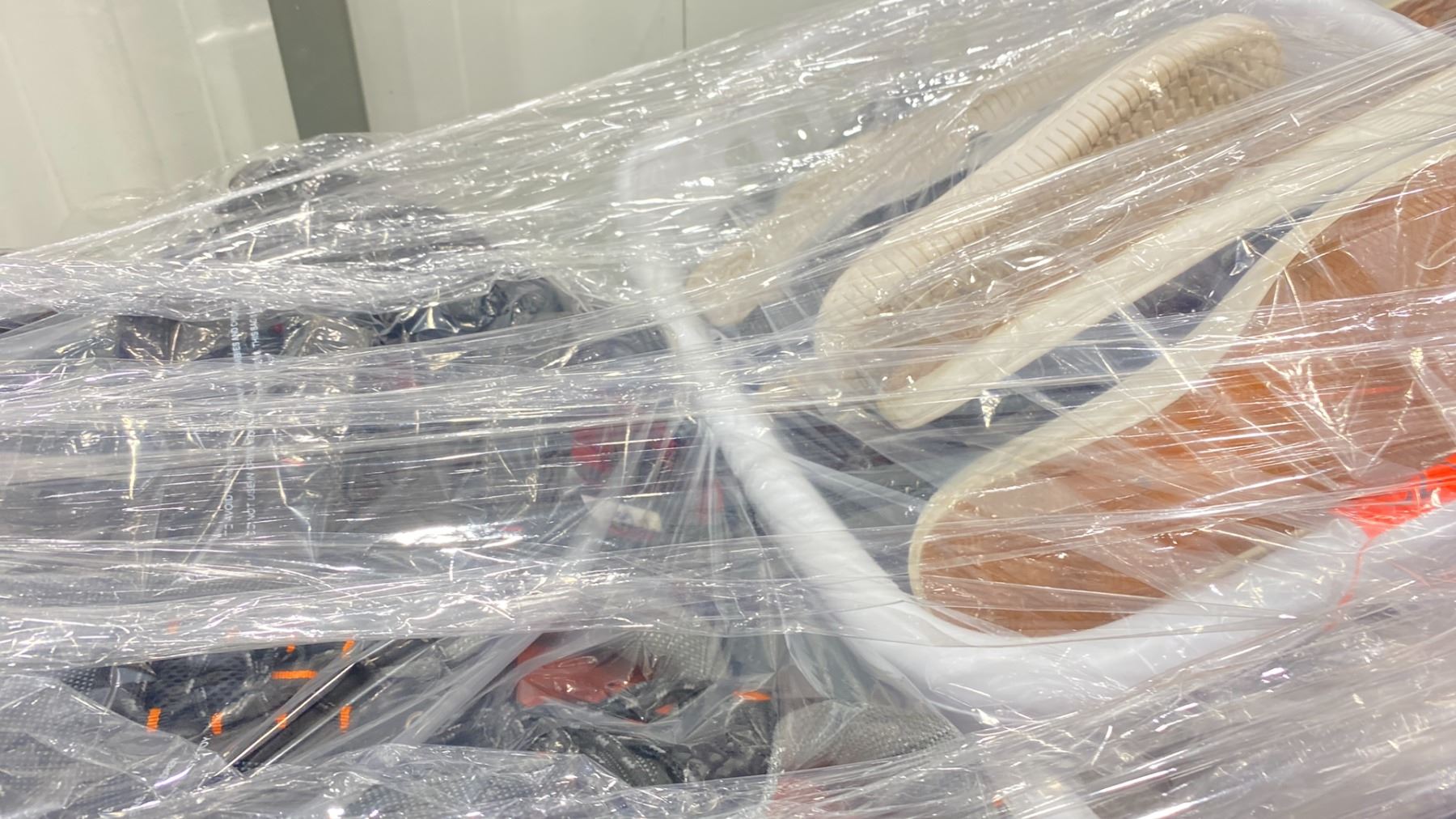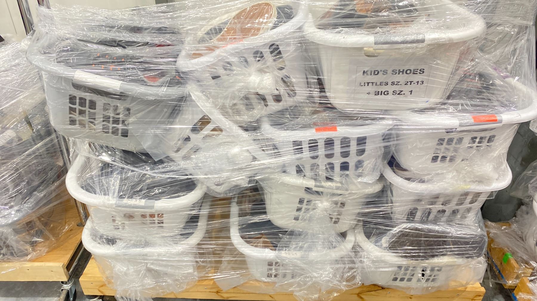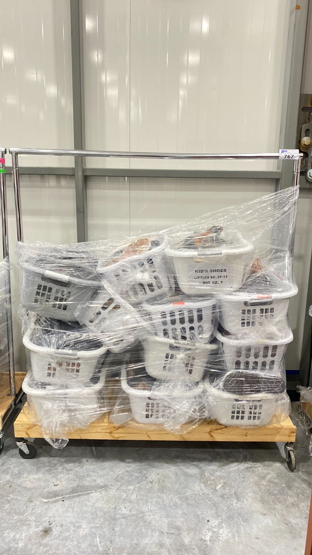 ROLLING RACK OF ASSORTED SHOES (RACK INCLUDED & MUST BE TAKEN)