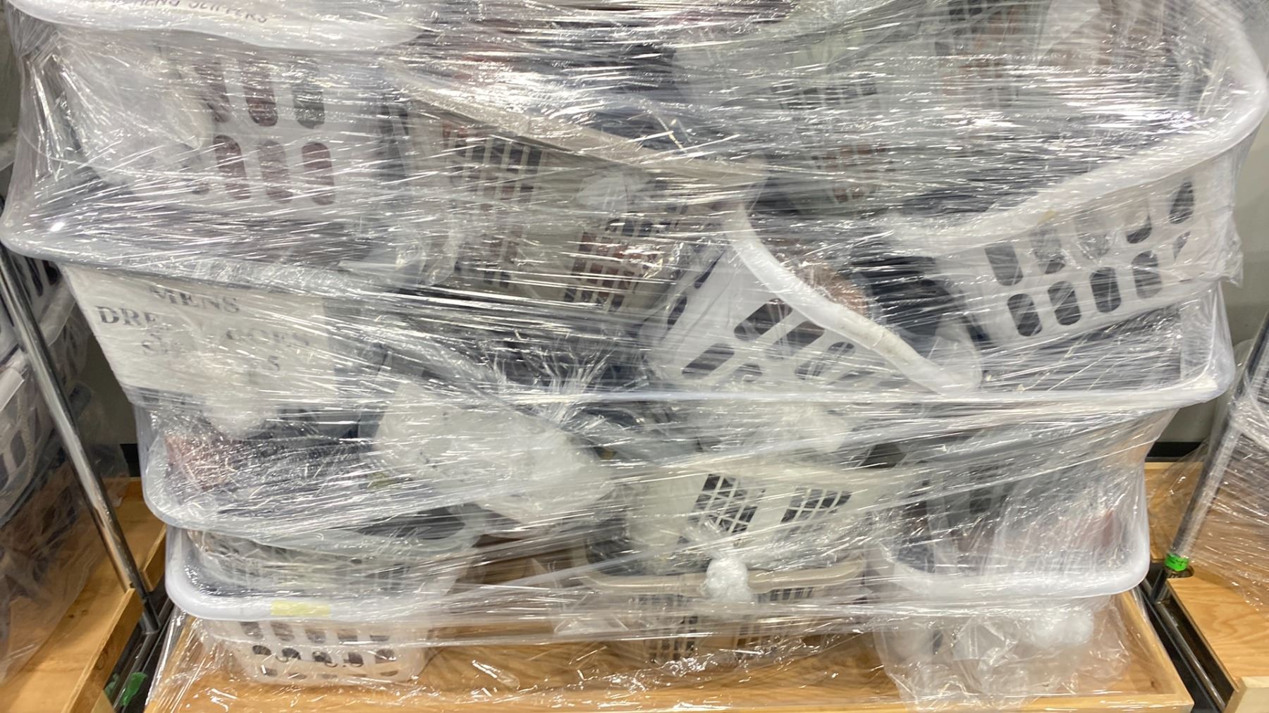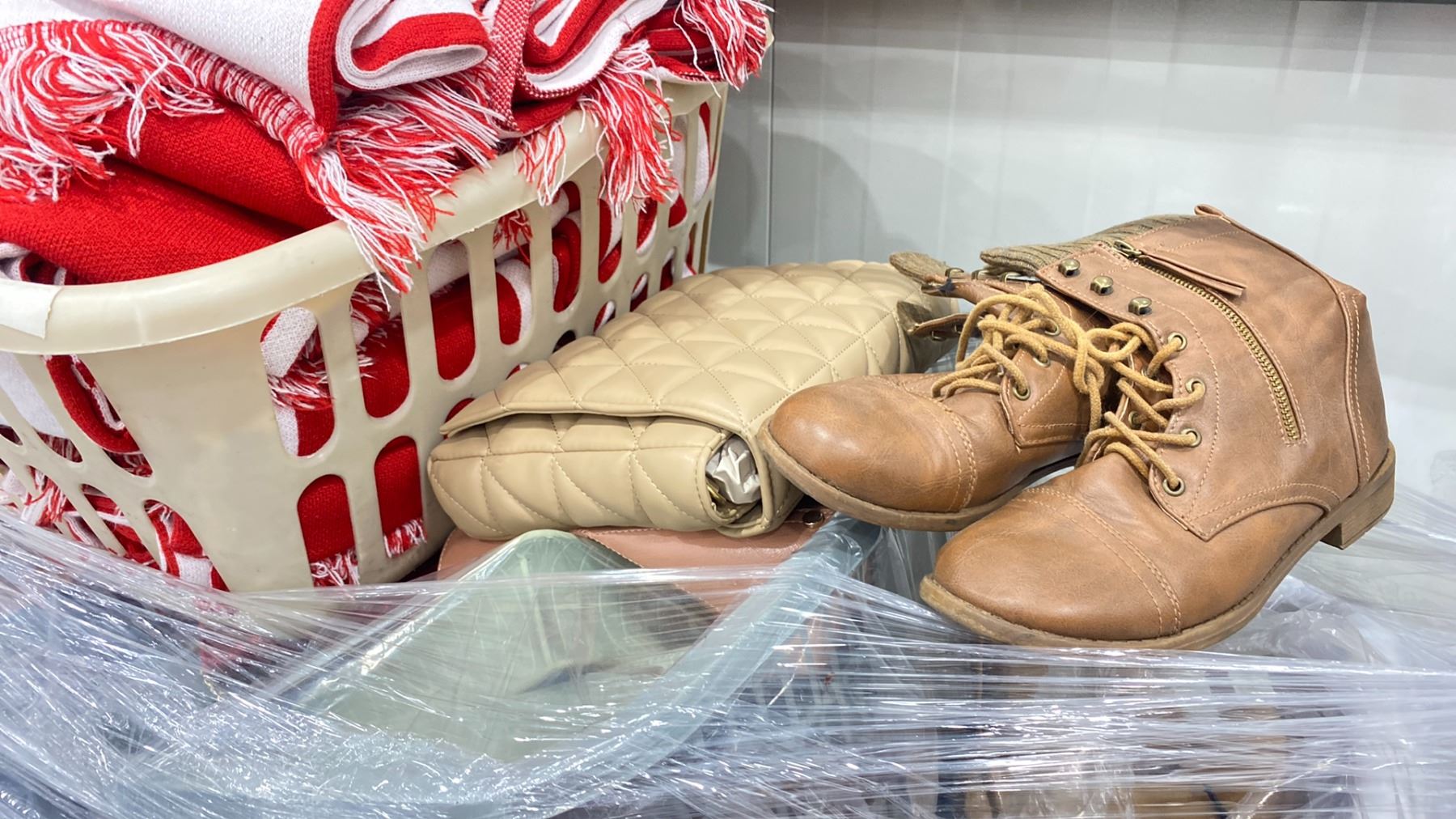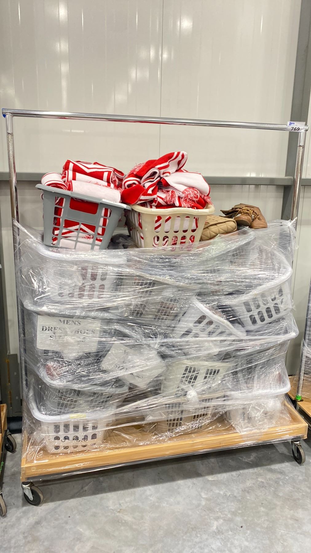 ROLLING RACK OF ASSORTED SHOES (RACK INCLUDED & MUST BE TAKEN)