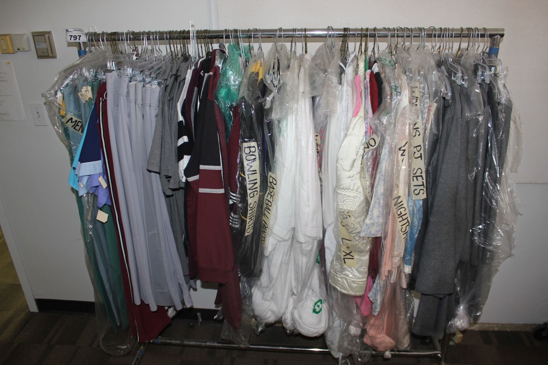 ROLLING RACK OF COSTUMES AND CLOTHING, RACK NOT INCLUDED