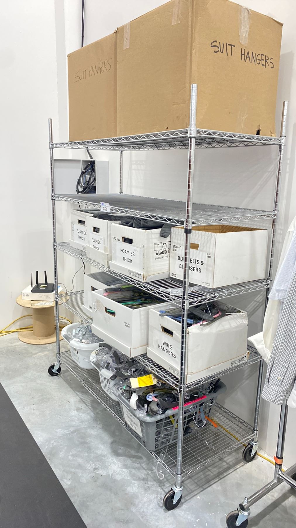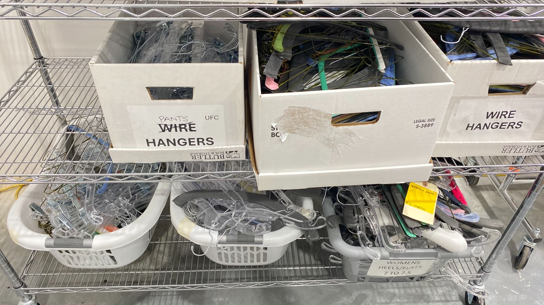 ROLLING RACK WITH ASSORTED HANGER CONTENTS (RACK INCLUDED & MUST BE TAKEN)