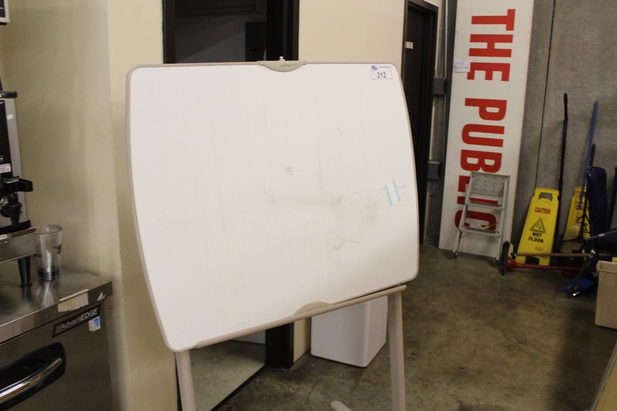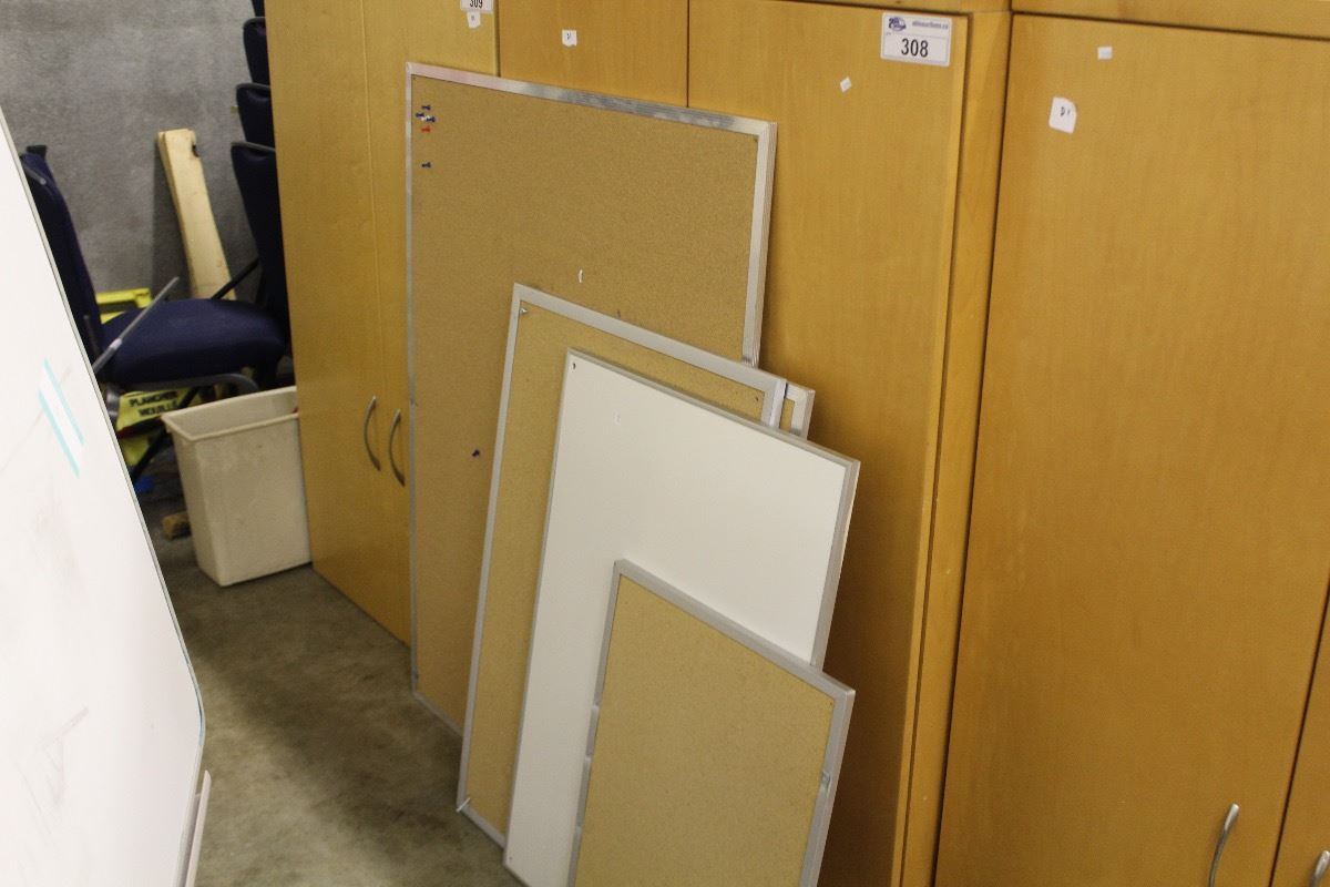 ROLLING WHITE BOARD, SMALL WHITEBOARD AND 4 CORK BOARDS