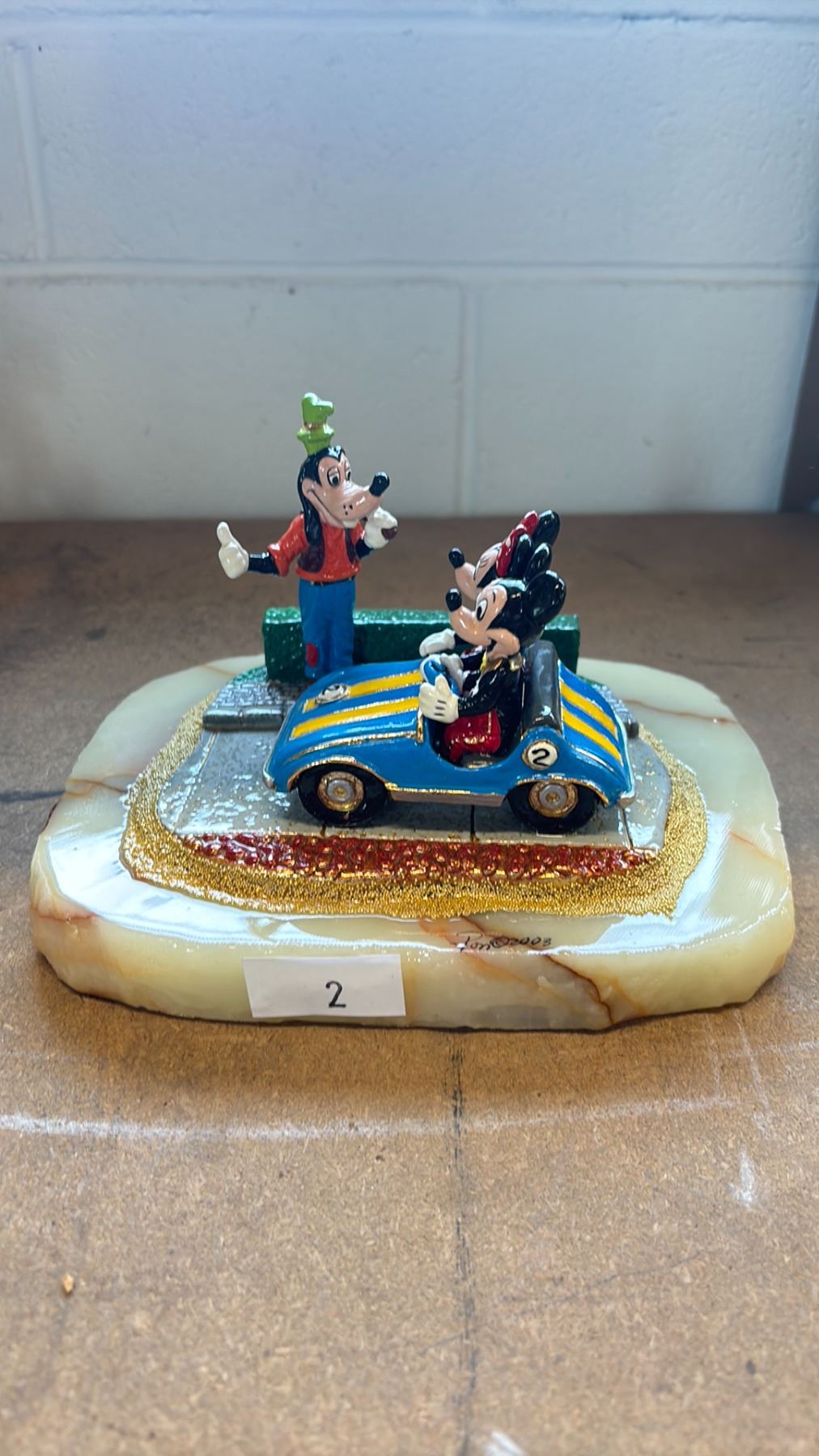 RON LEE COLLECTIBLES MICKEY, MINNIE & GOOFY RACE CAR FIGURINE